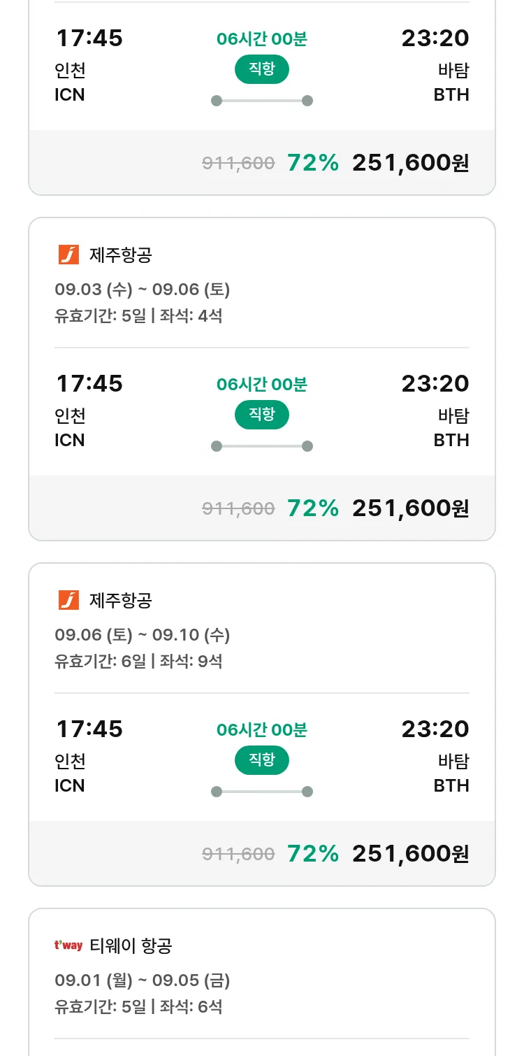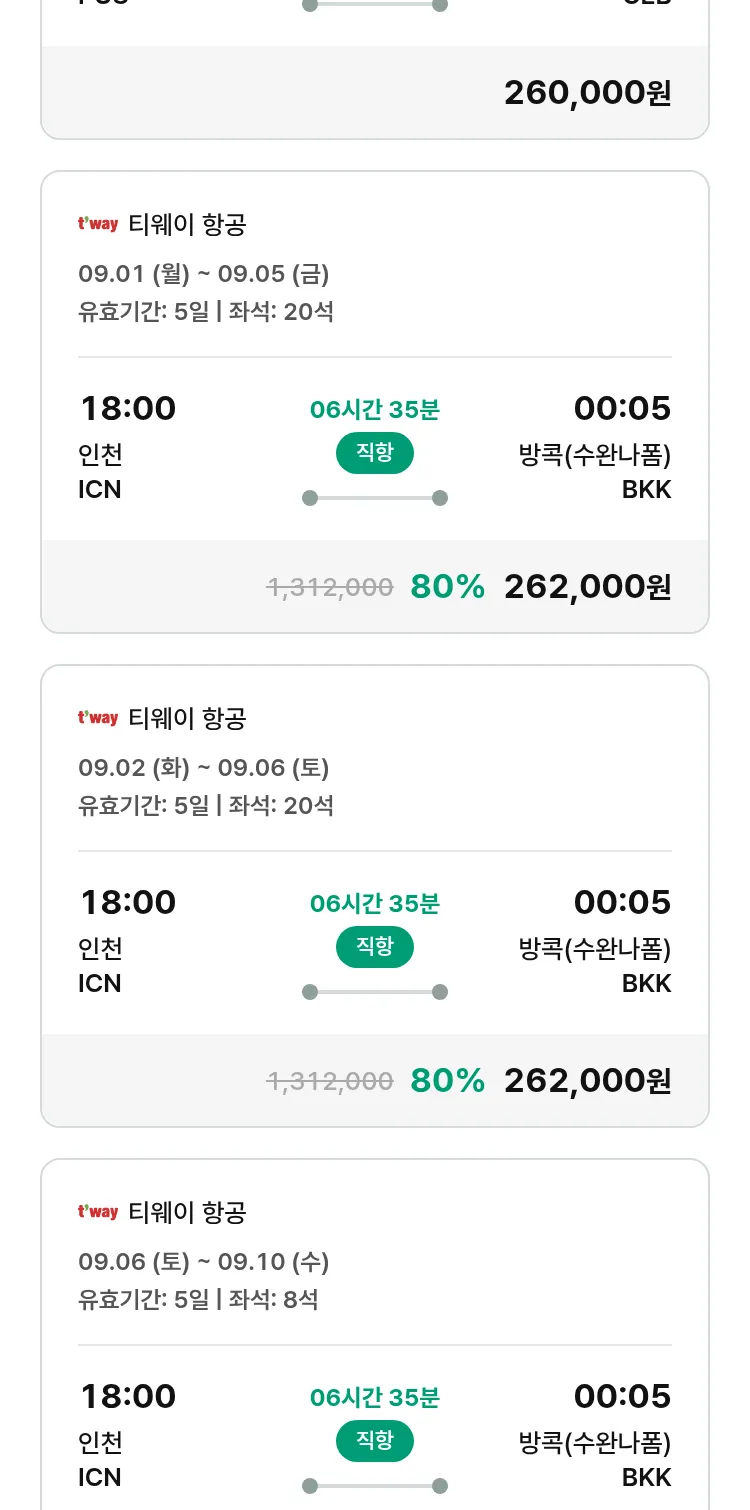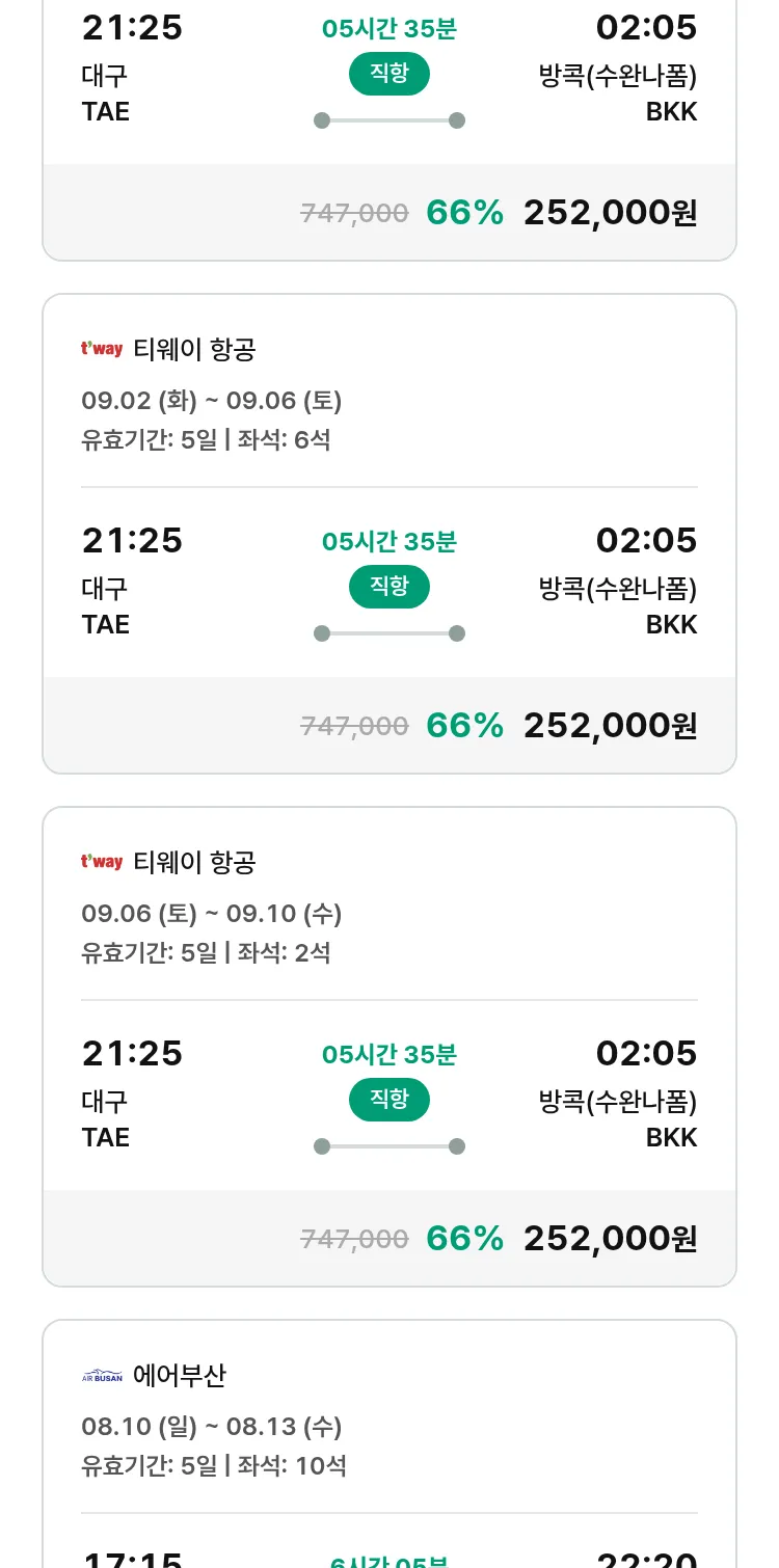 (8월6일(수)) 땡처리 특가 항공권