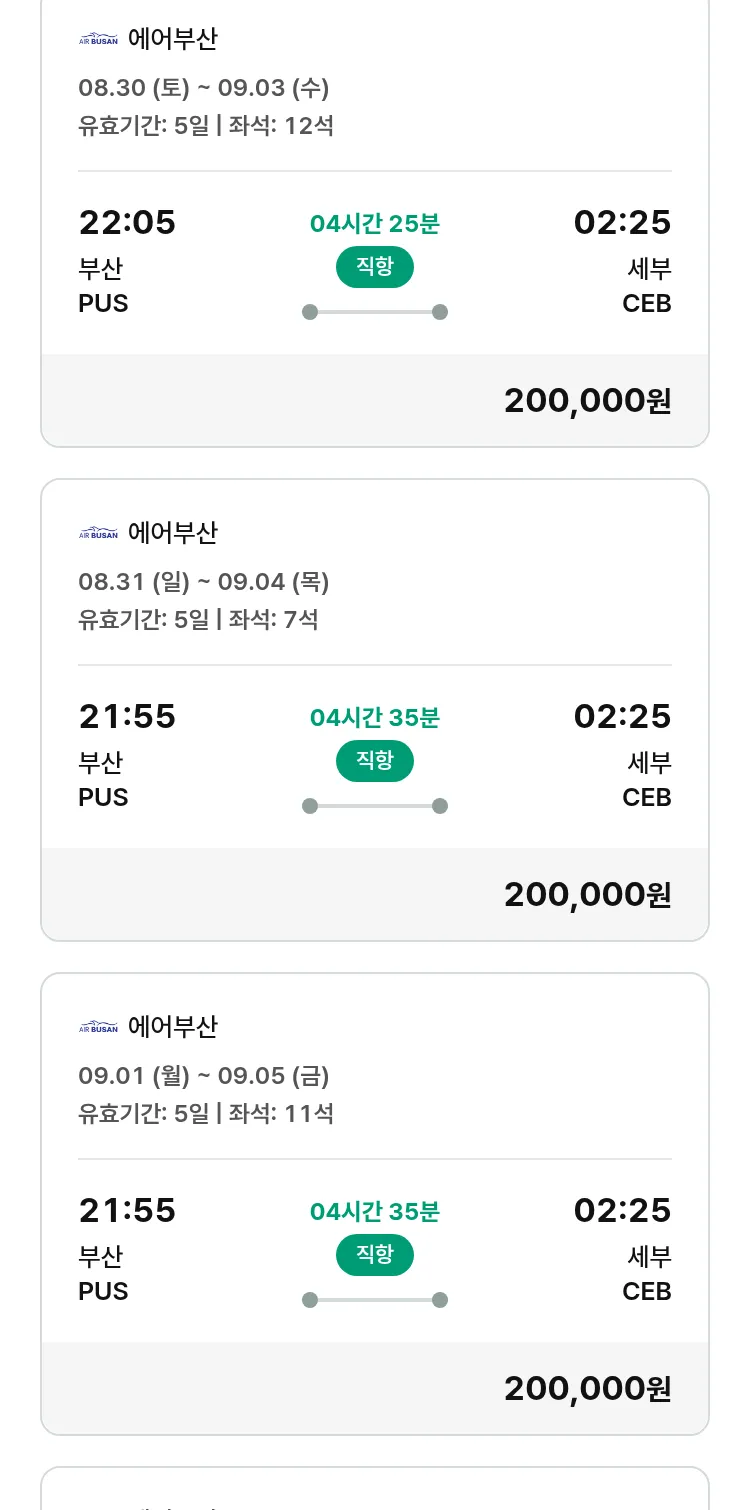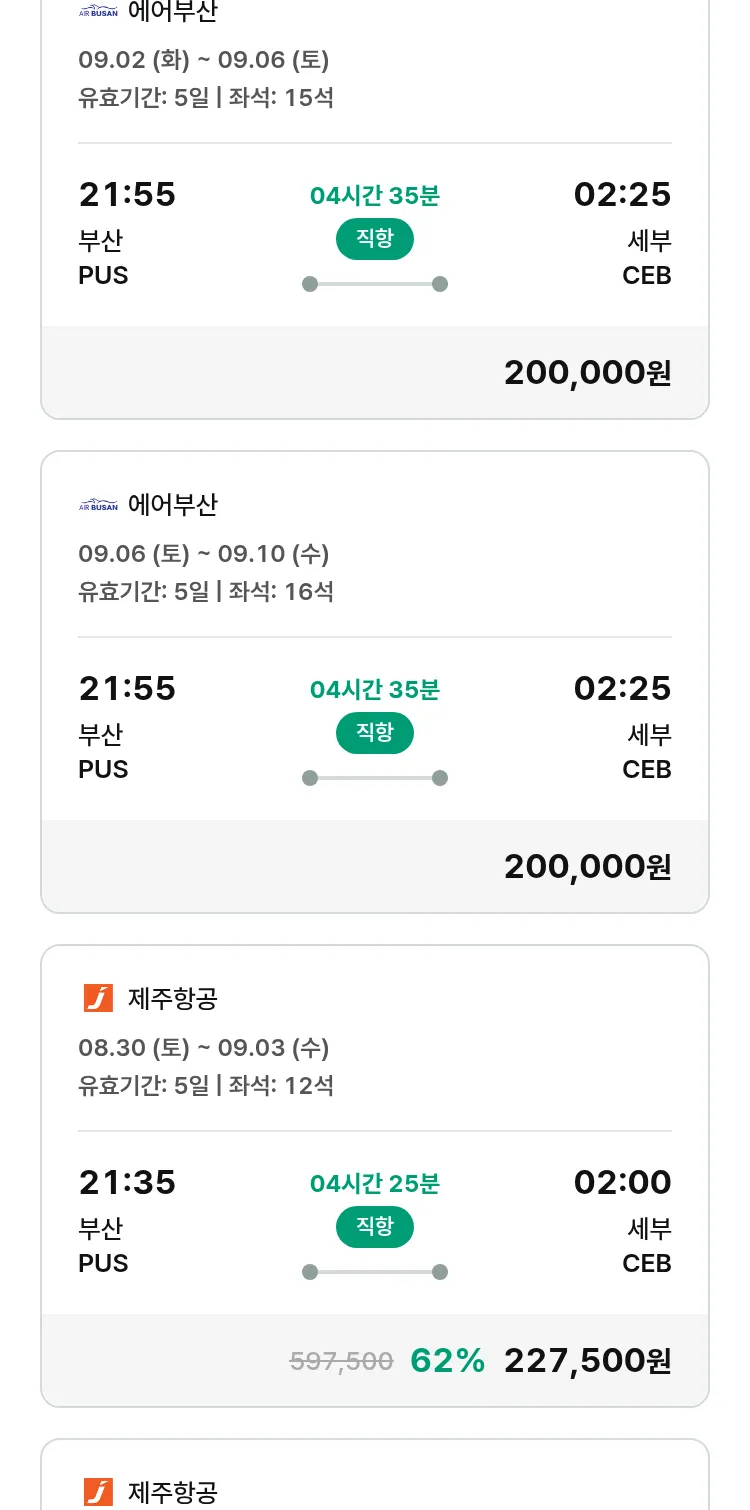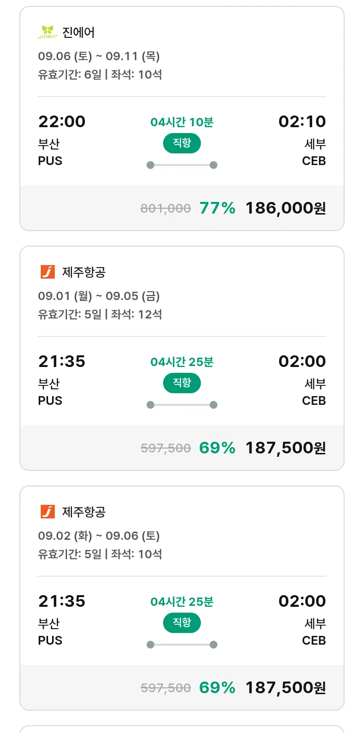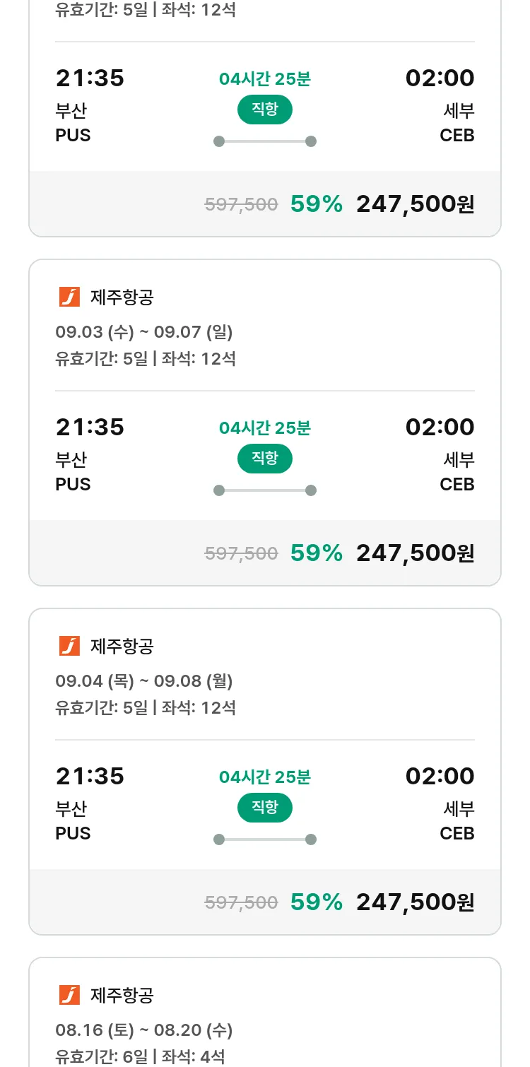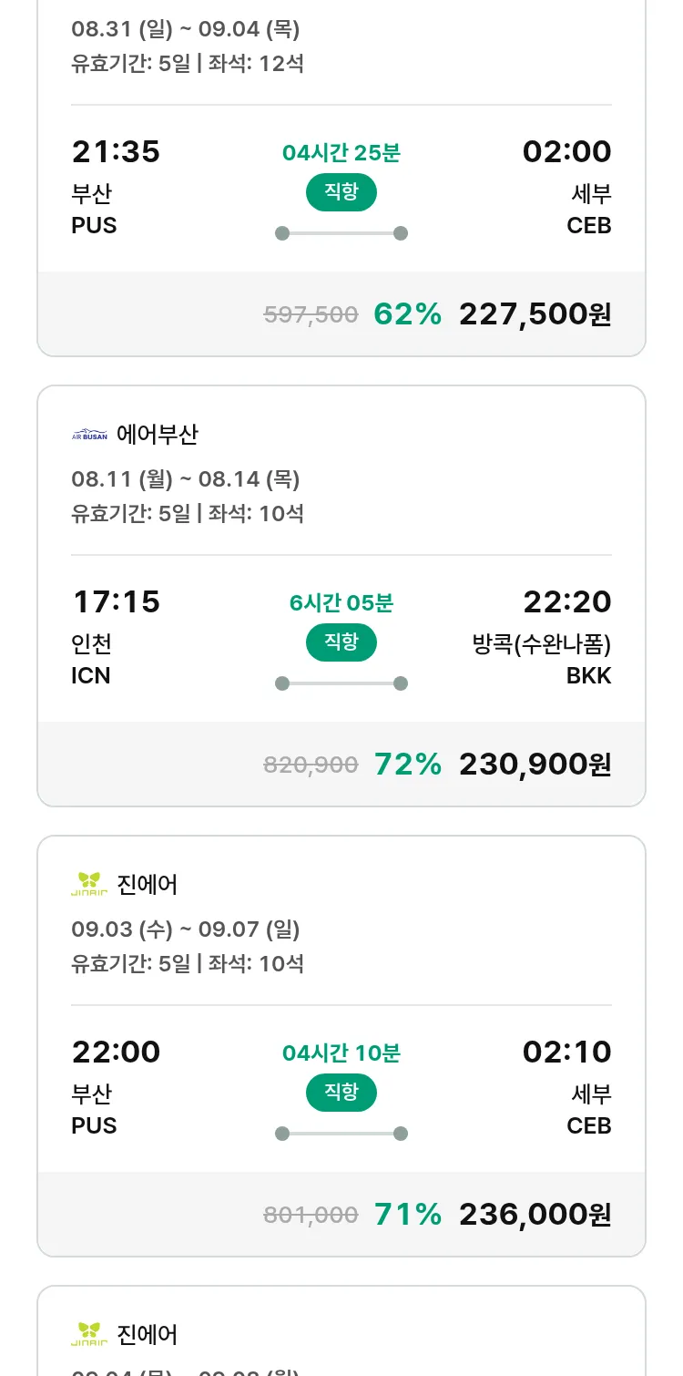 (8월7일(목)) 땡처리 특가 항공권