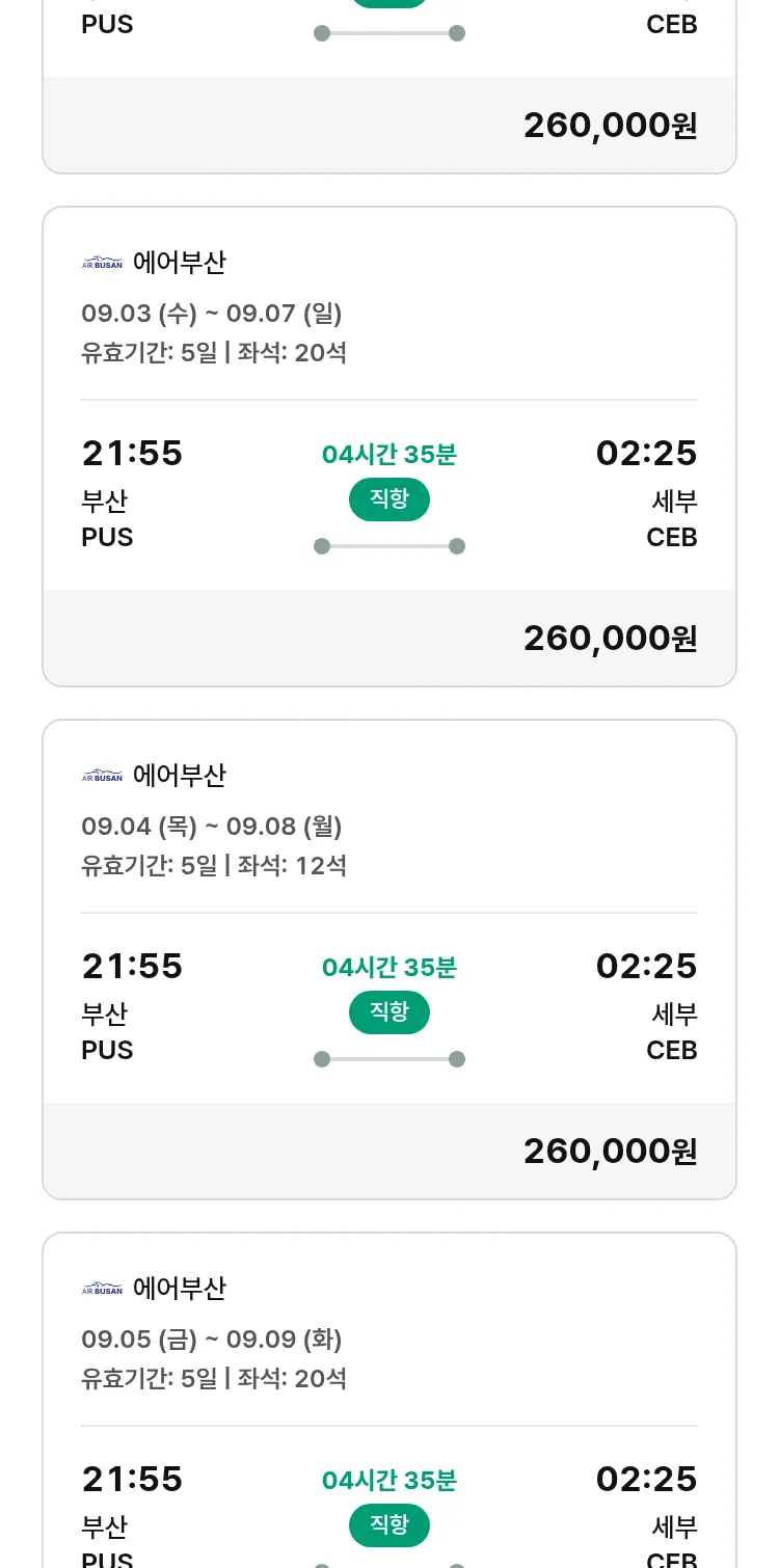 (8월5일(화)) 땡처리 특가 항공권