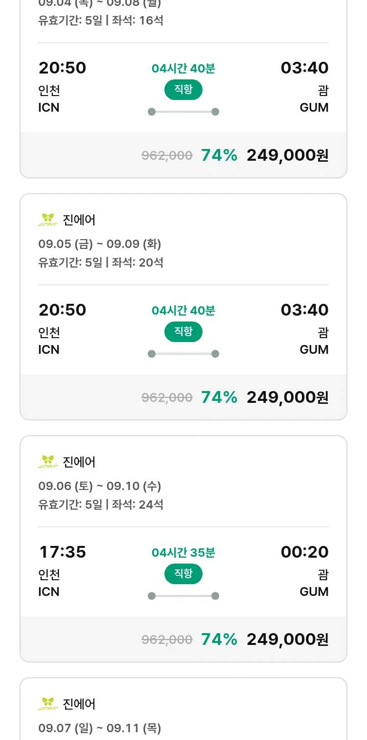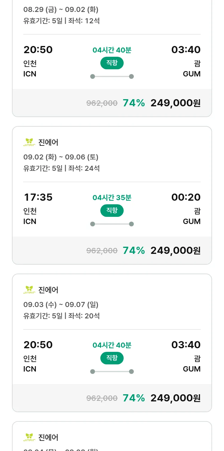 (8월7일(목)) 모두투어 남태평양 특가 항공권