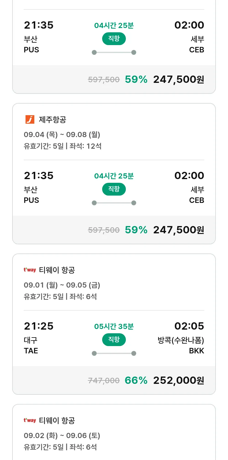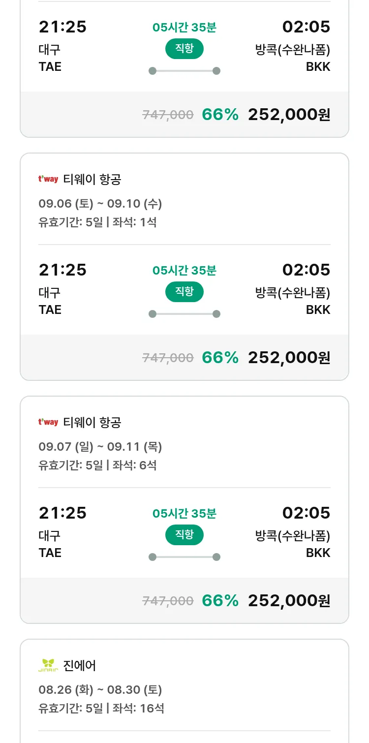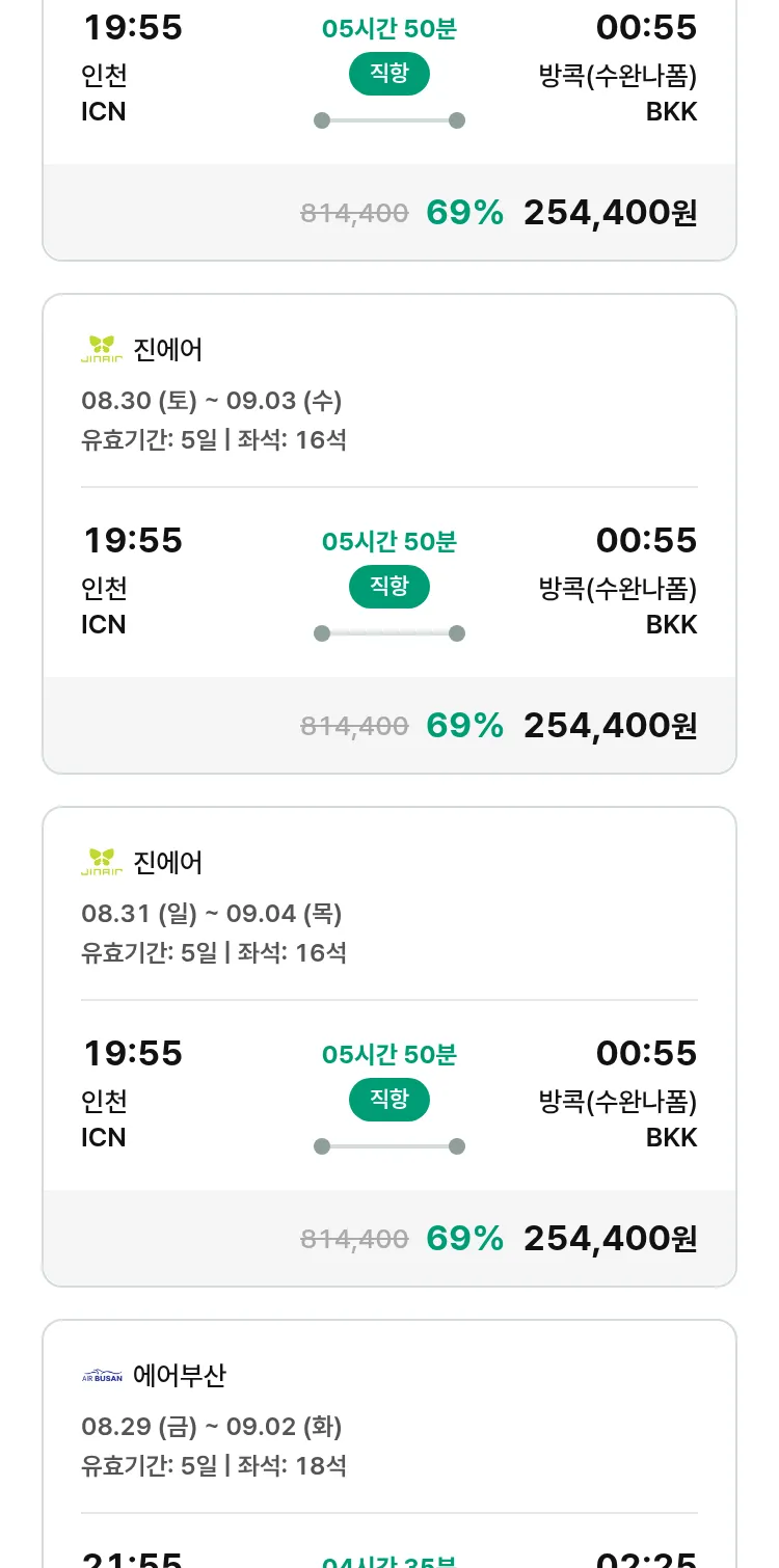 (8월5일(화)) 모두투어 동남아 특가 항공권