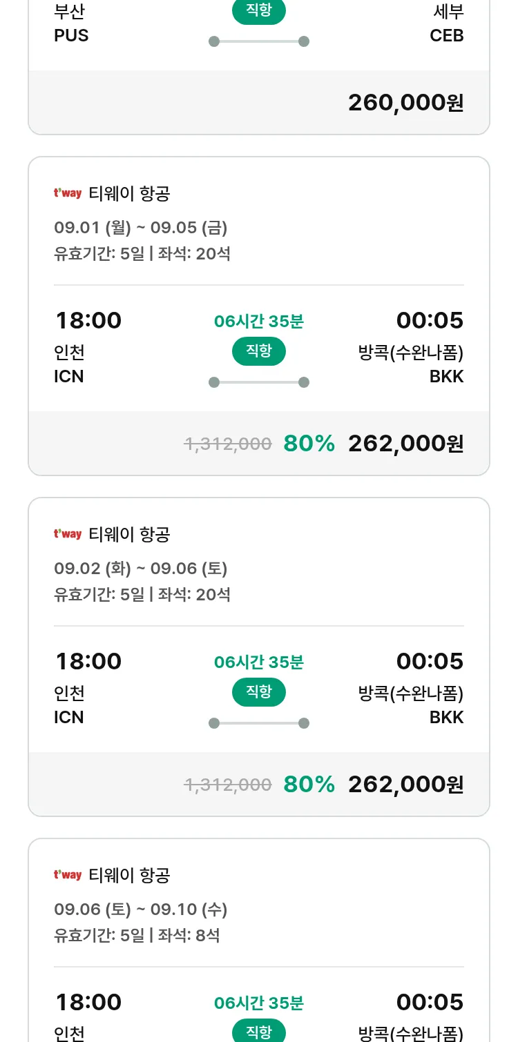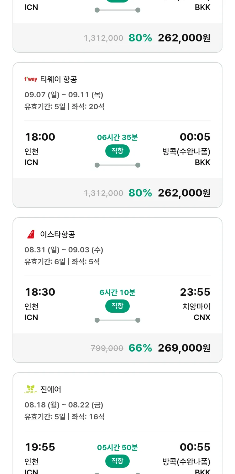 (8월7일(목)) 모두투어 동남아 특가 항공권