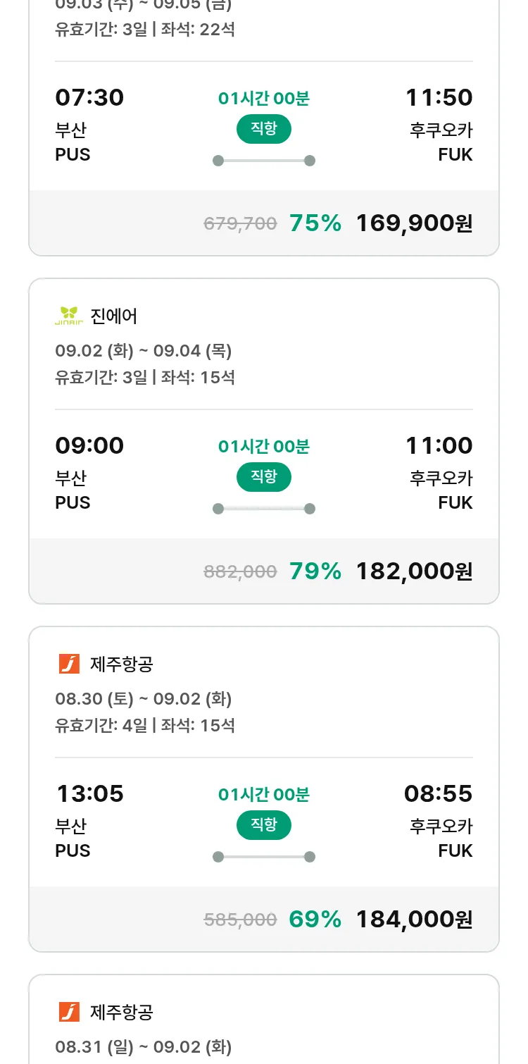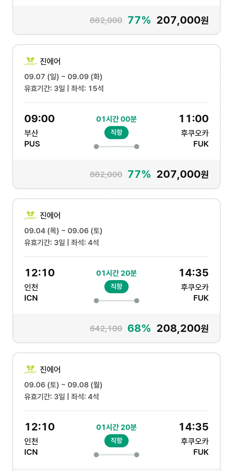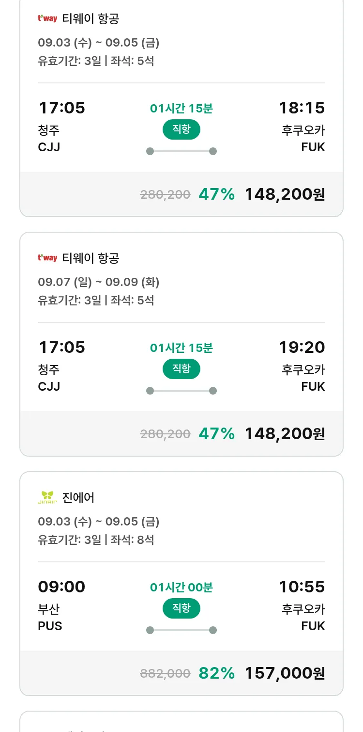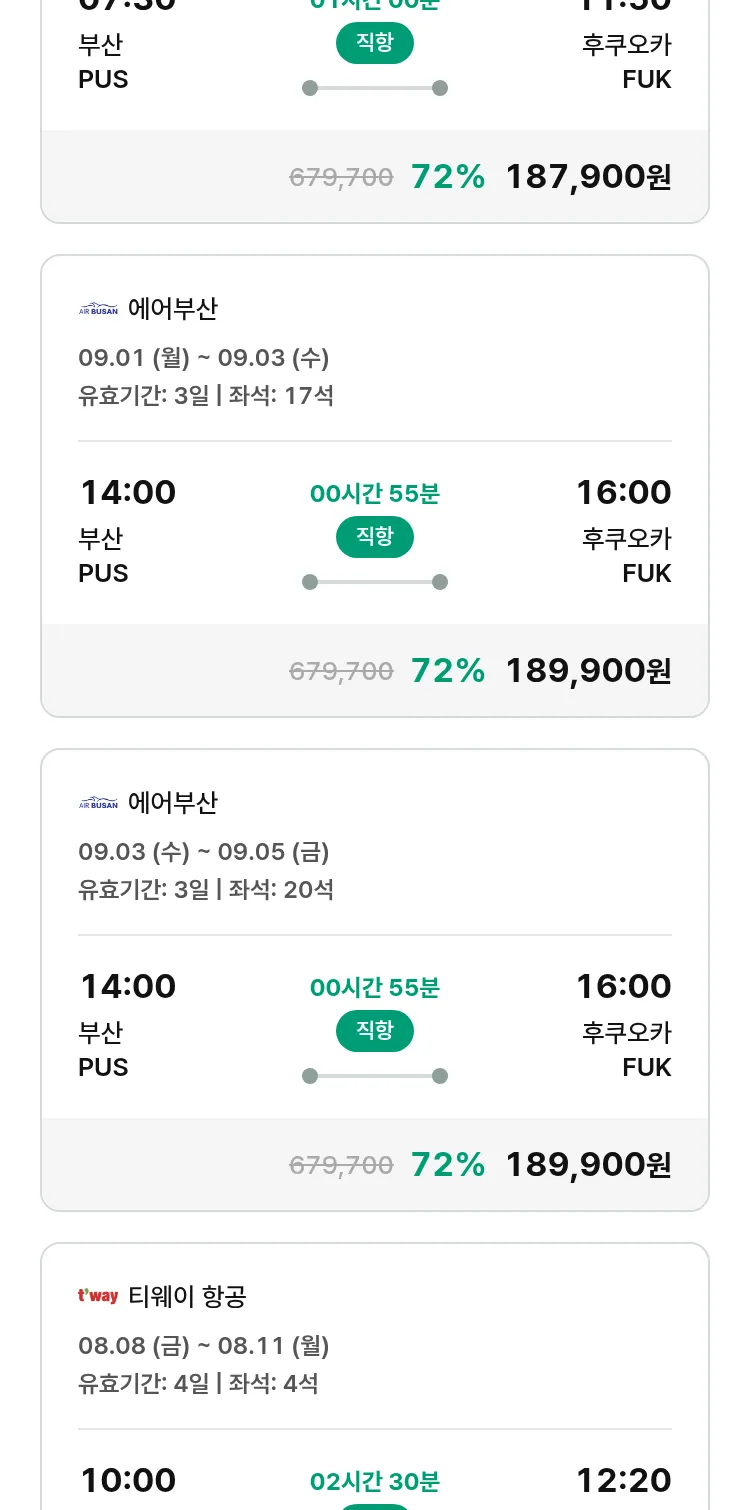 (8월7일(목)) 땡처리 특가 항공권