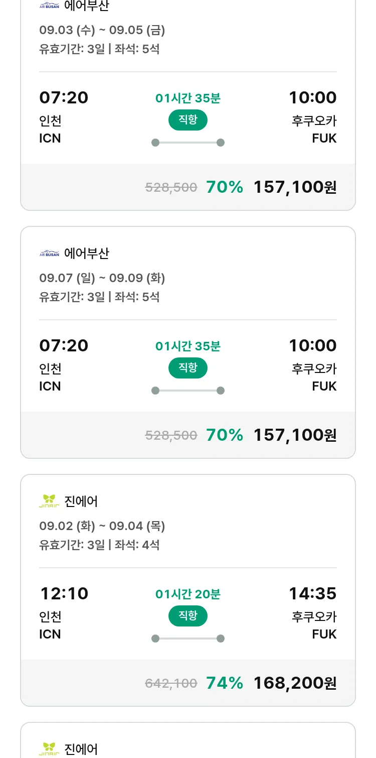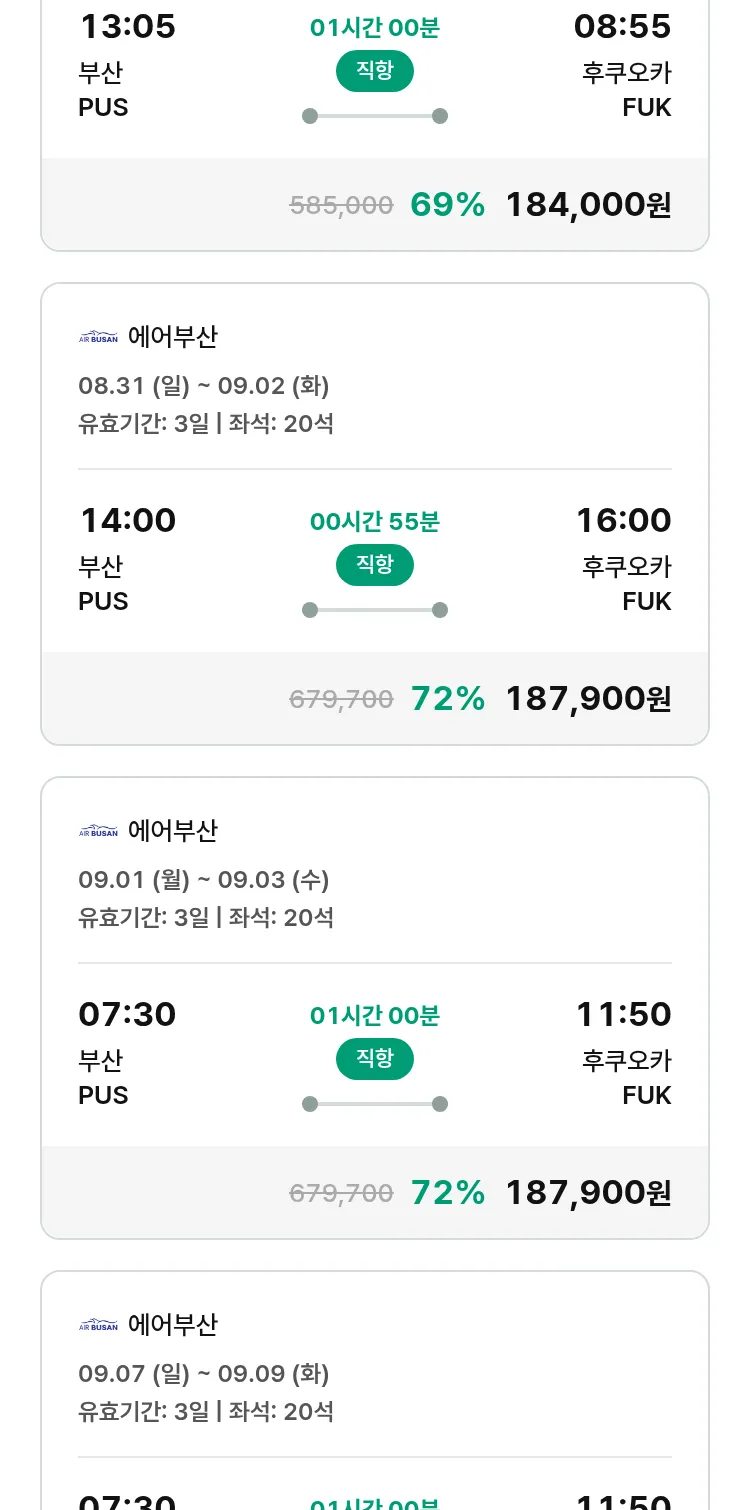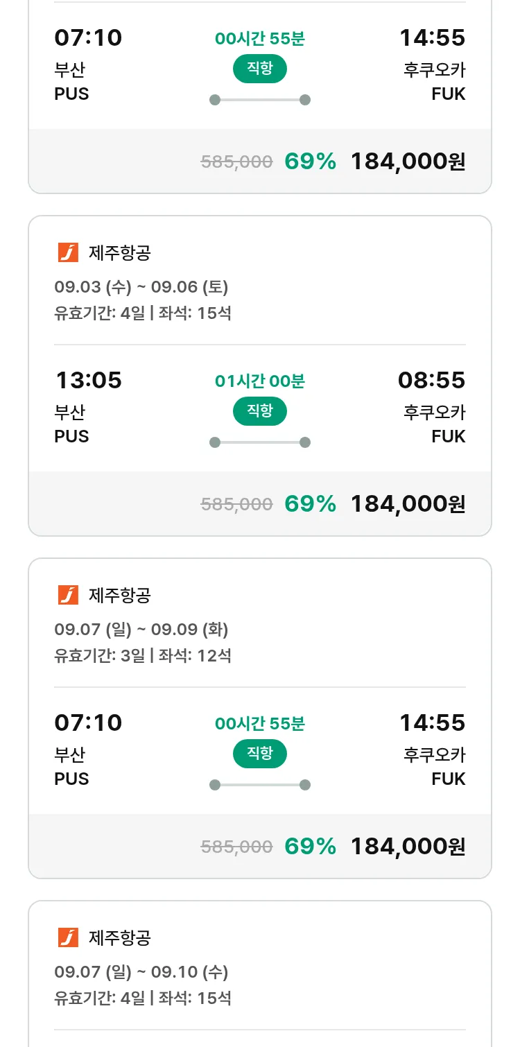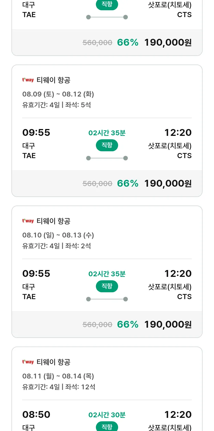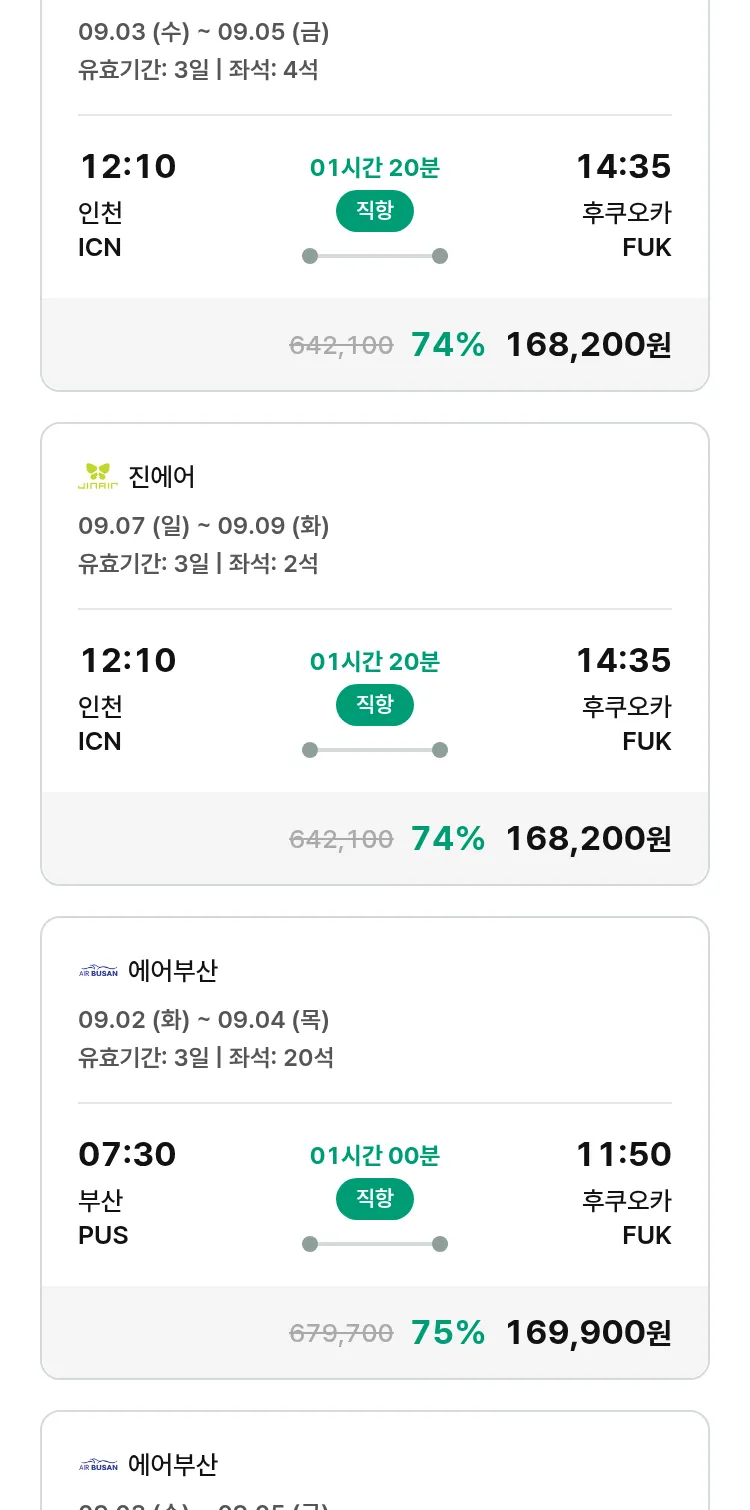 (8월7일(목)) 땡처리 특가 항공권