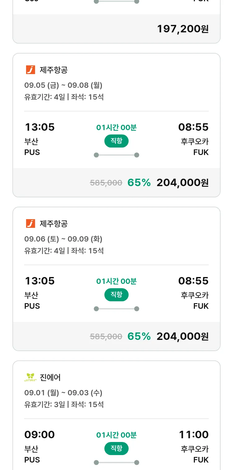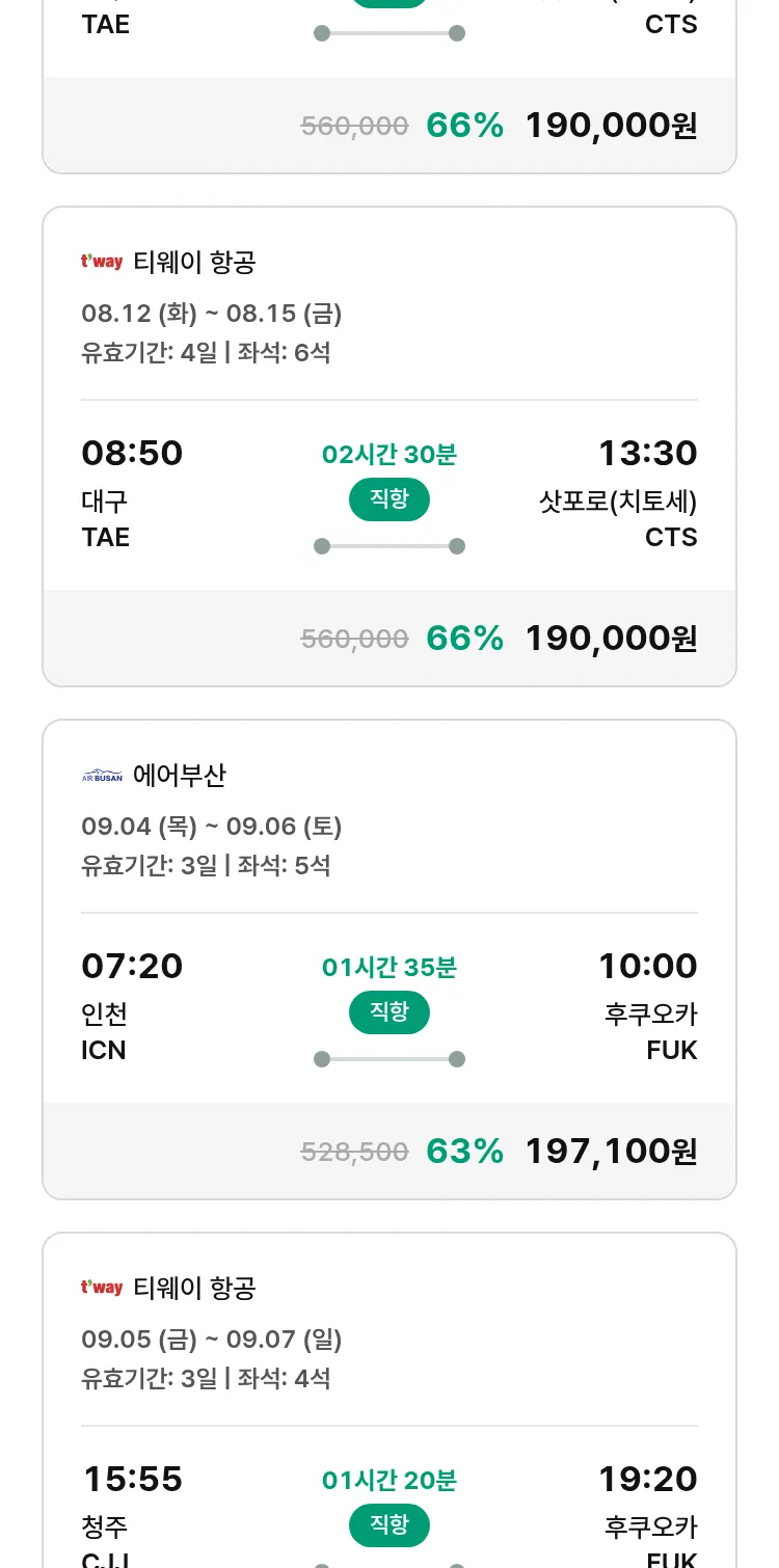 (8월6일(수)) 땡처리 특가 항공권