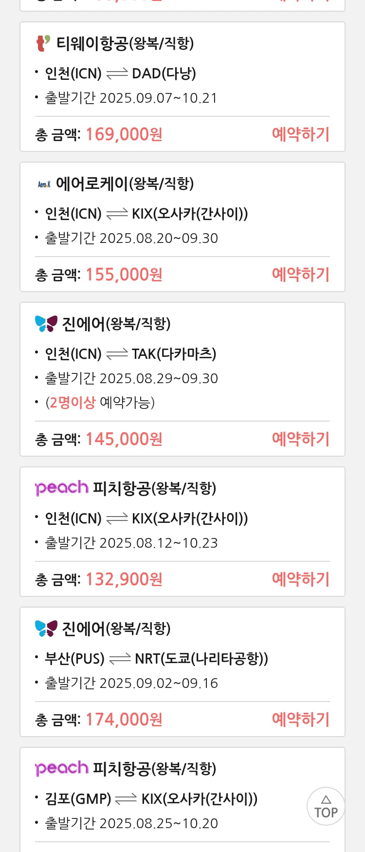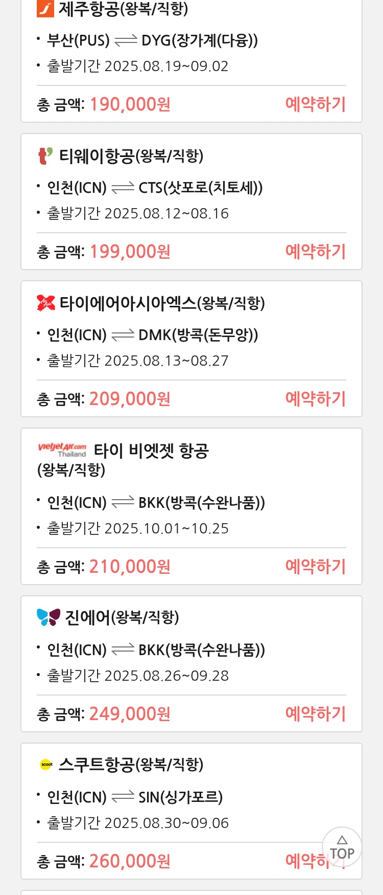 (8월 12일(화)) 땡처리 특가 항공권