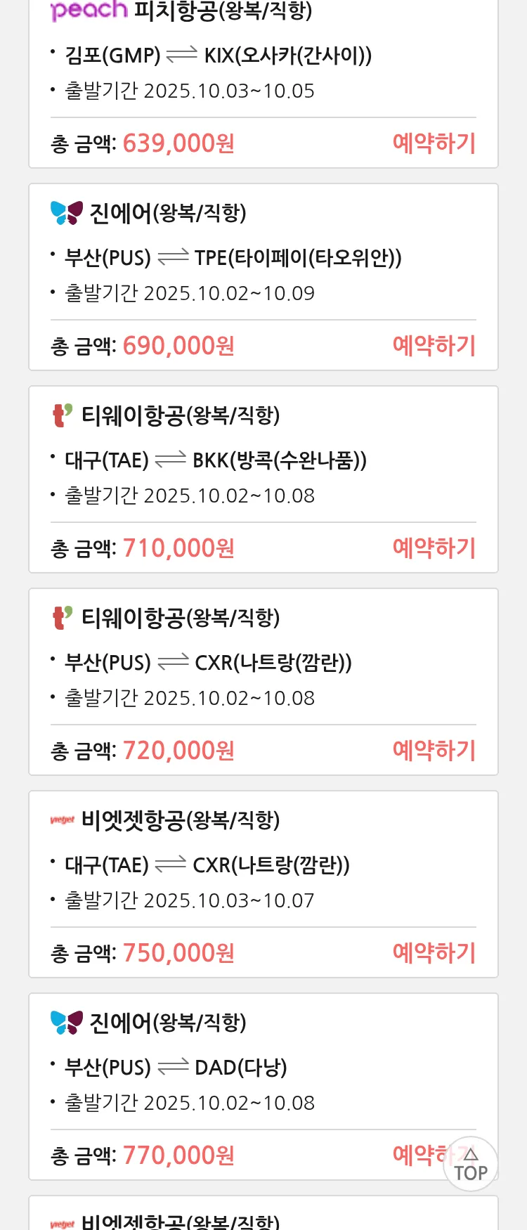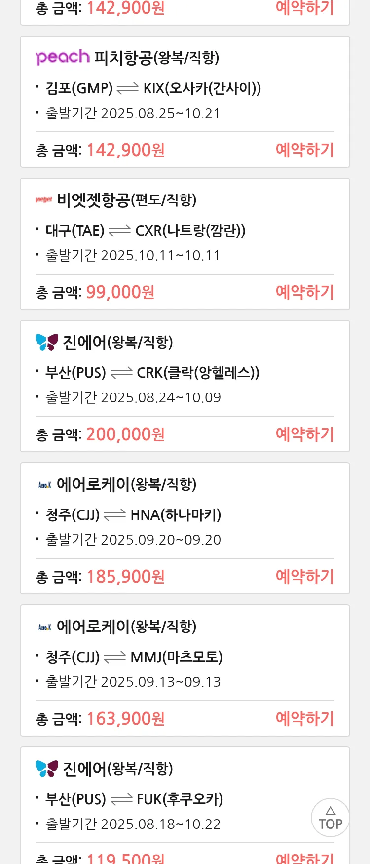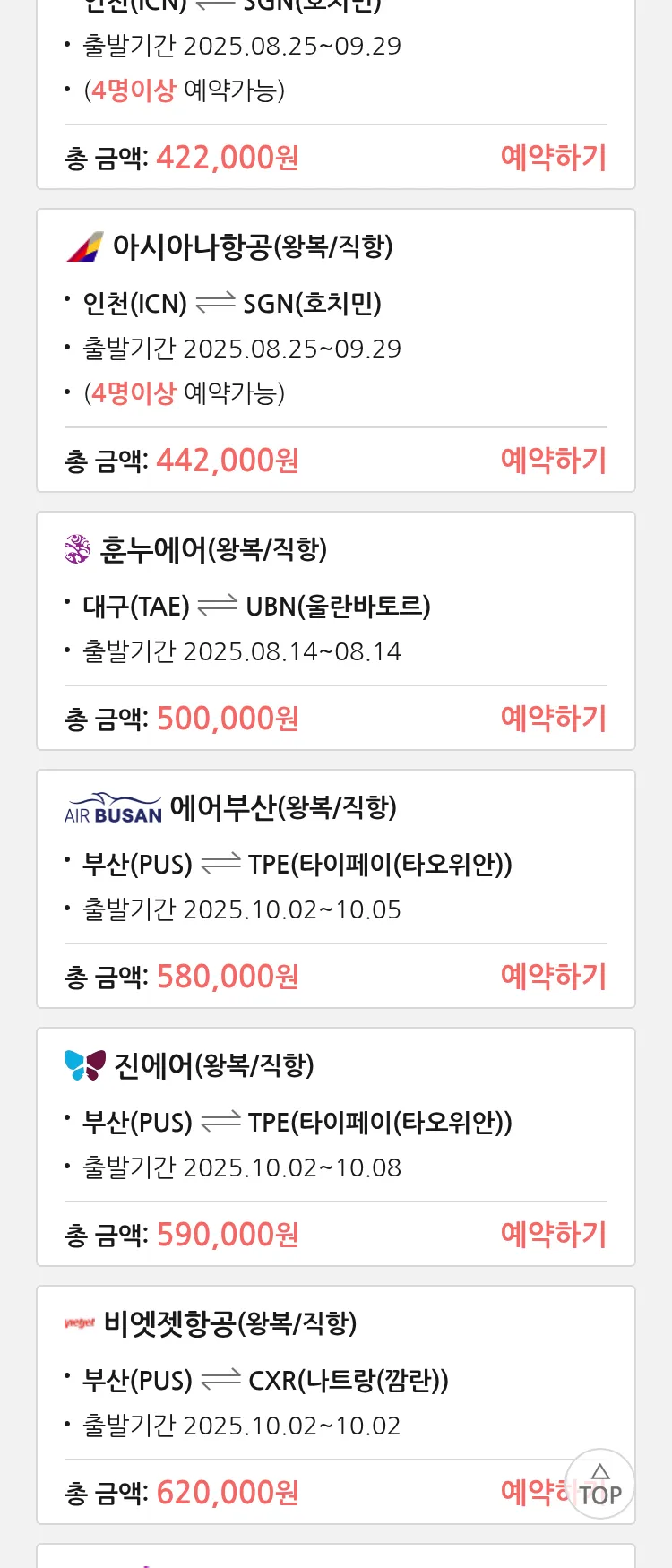 (8월 10일(일)) 땡처리 특가 항공권
