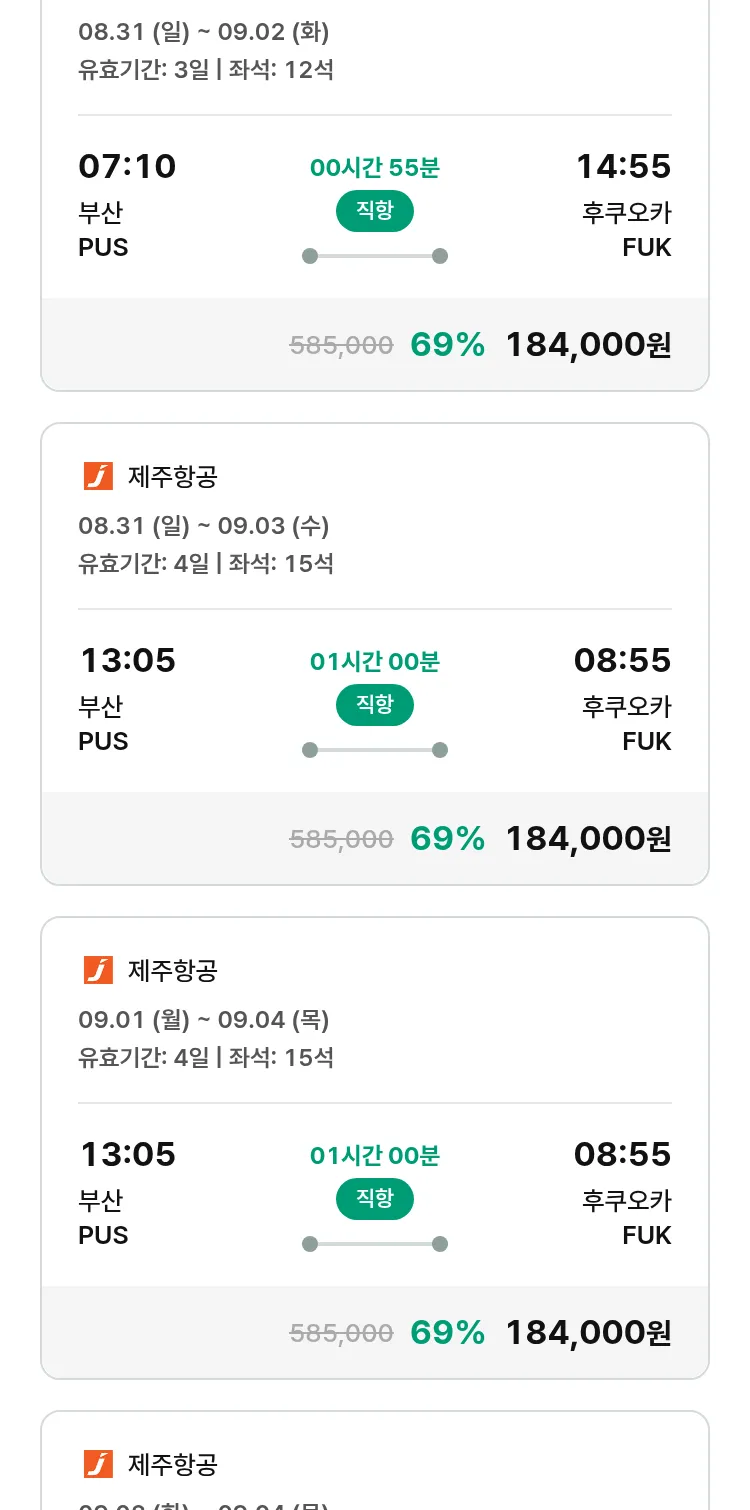 (8월 12일(화)) 모두투어 일본 특가 항공권