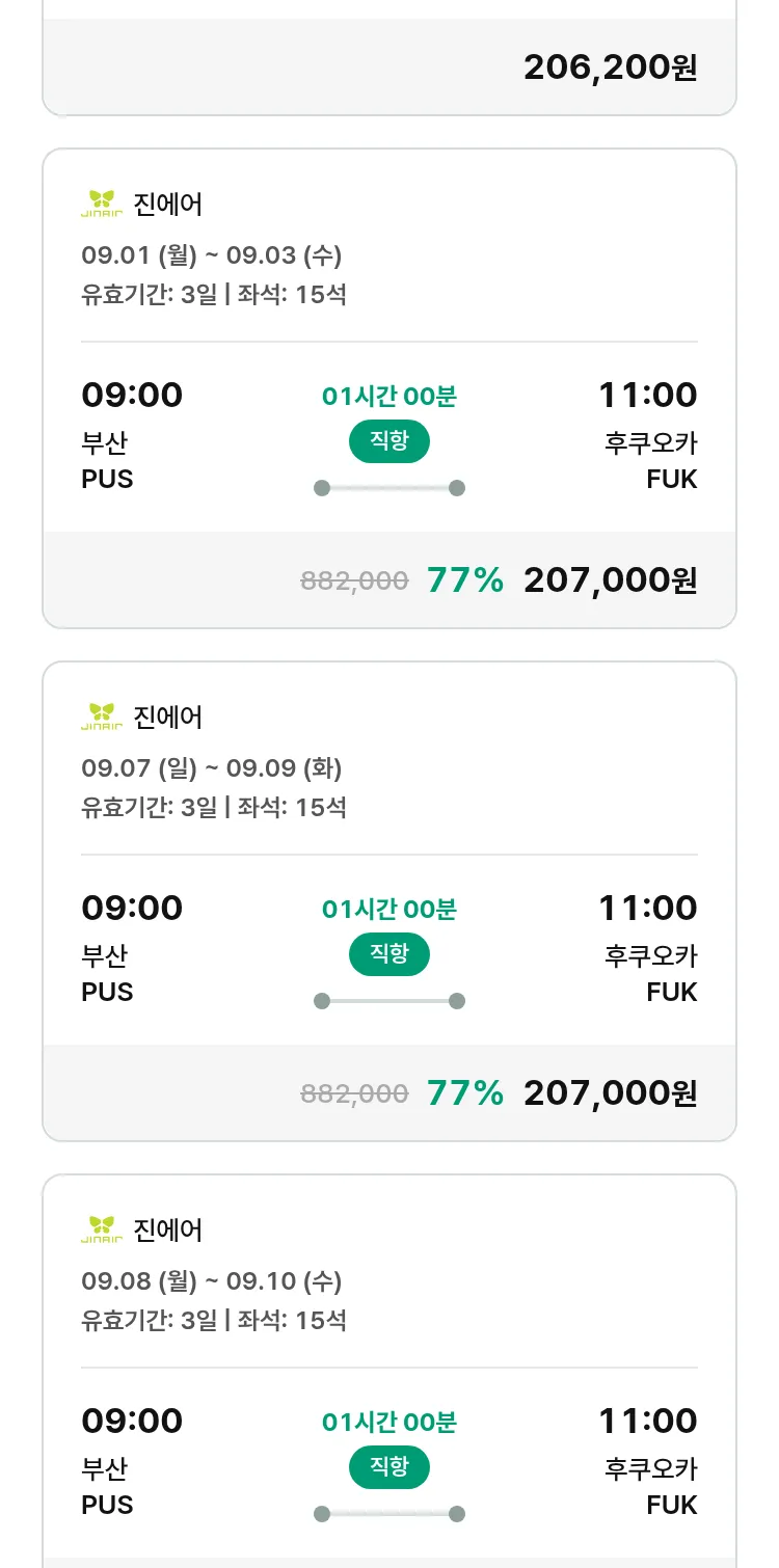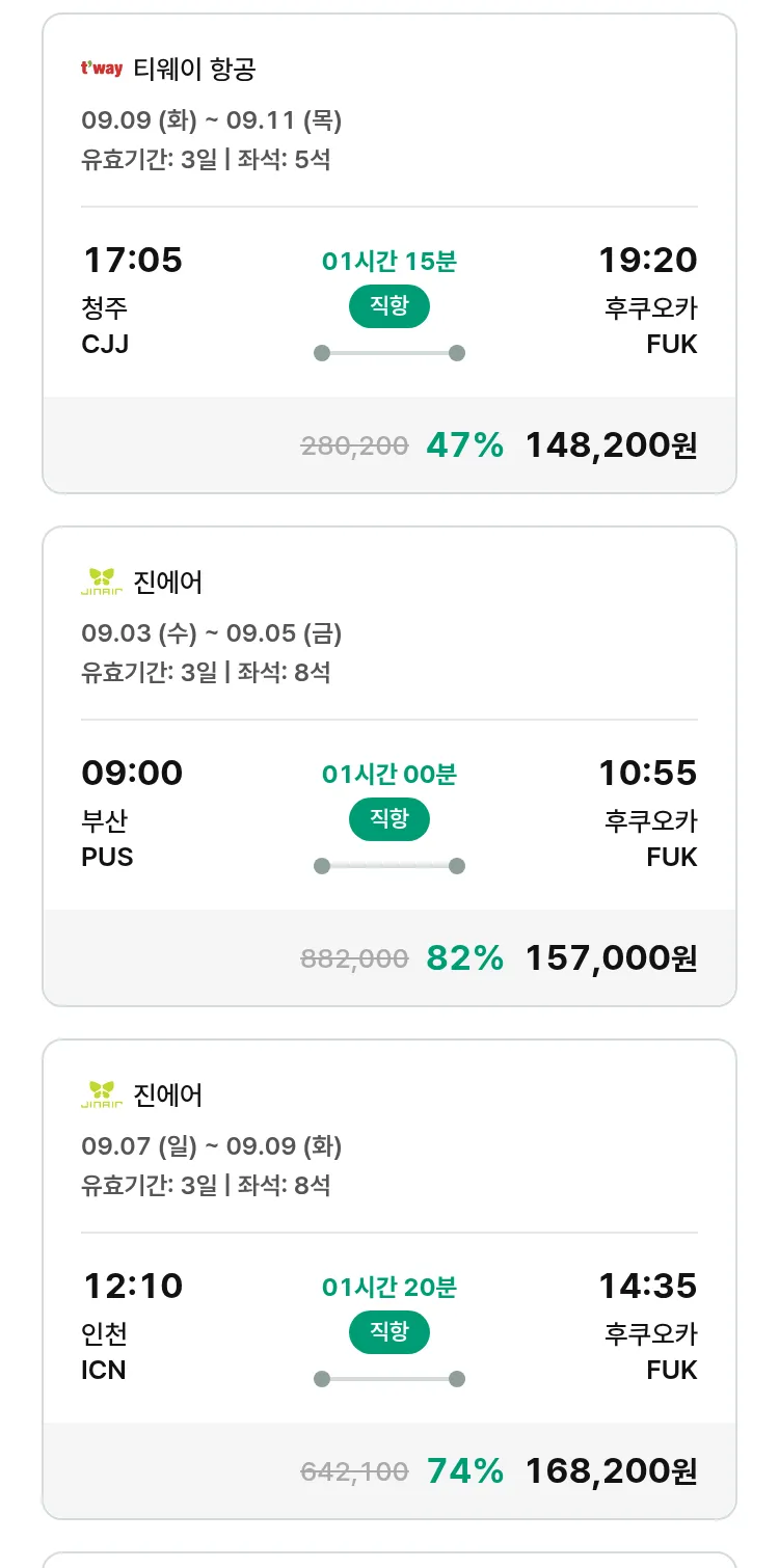 (8월9일(토)) 모두투어 일본 특가 항공권