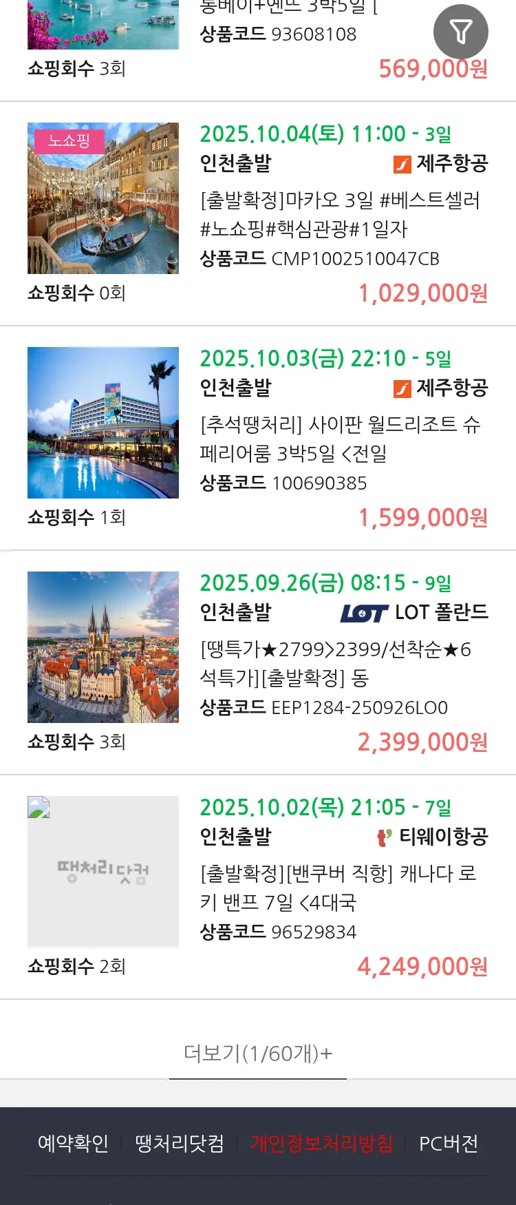 (9월 10일(수)) 땡처리 마감임박 패키지