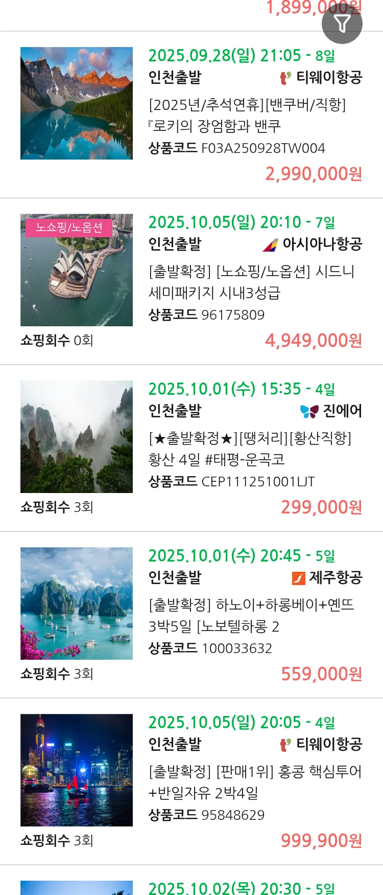 (9월 10일(수)) 땡처리 99.9% 확정 패키지