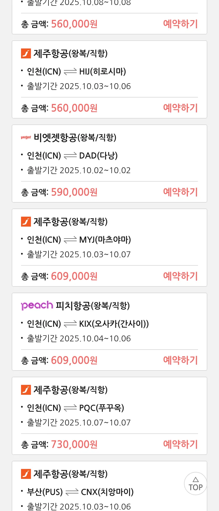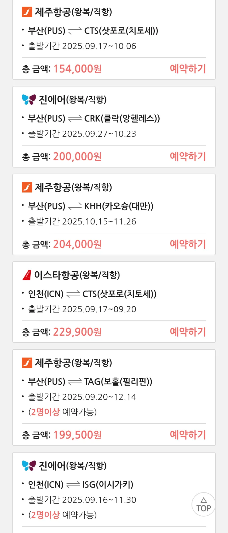 (9월9일(화)) 땡처리 99.9% 확정 항공권
