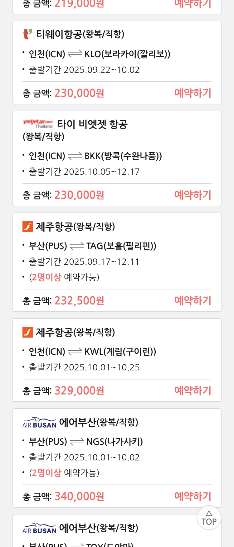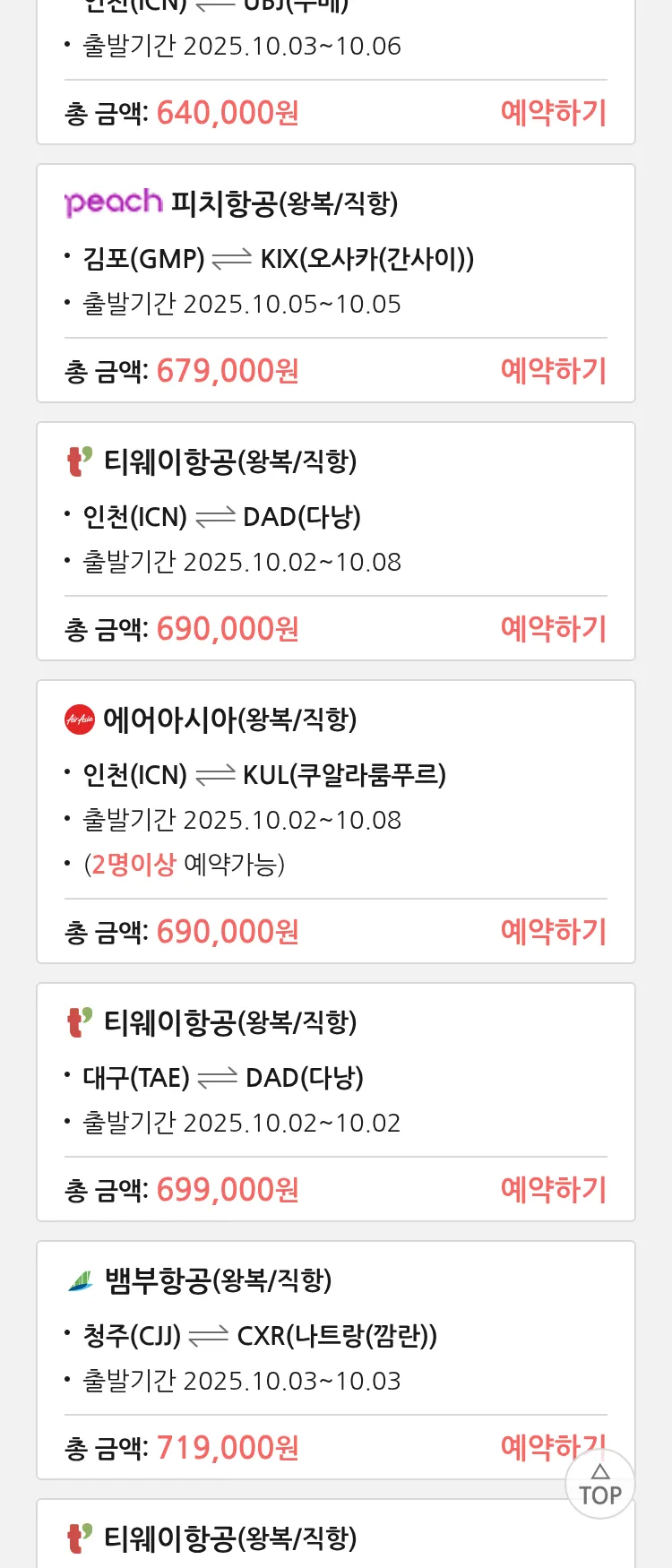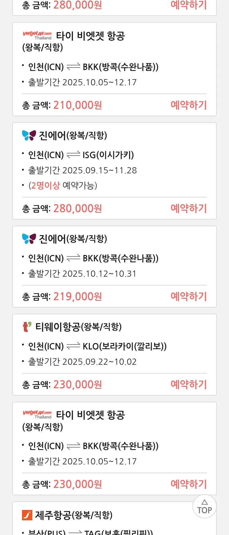 (9월 10일(수)) 모두투어 동남아 특가 항공권