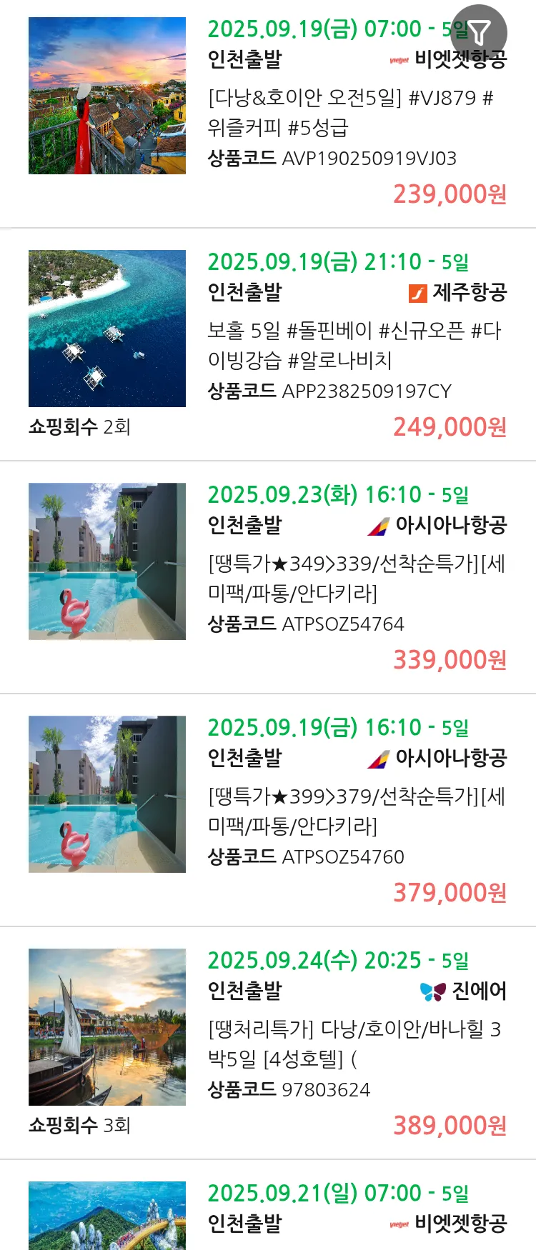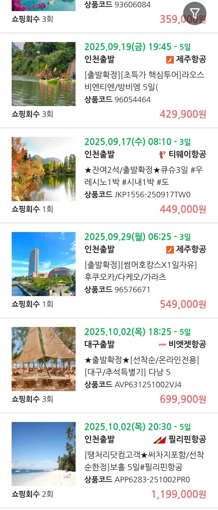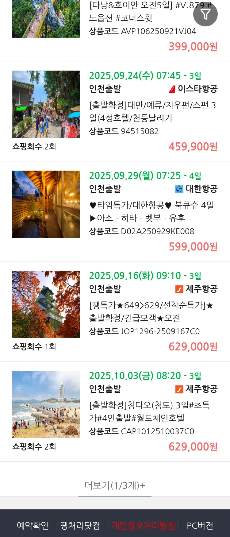 (9월 11일(목)) 땡처리 99.9% 확정 패키지