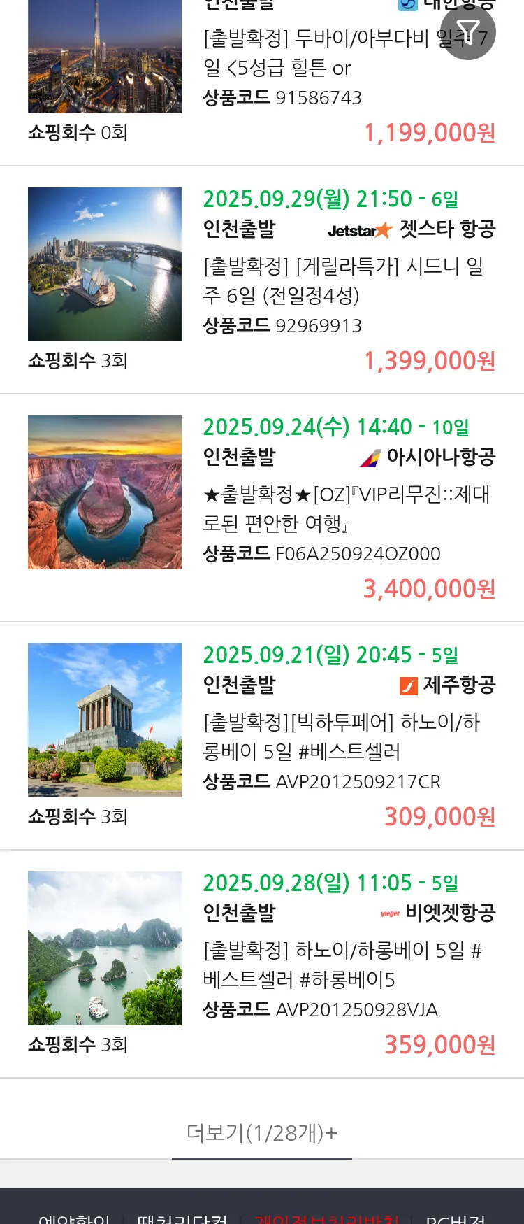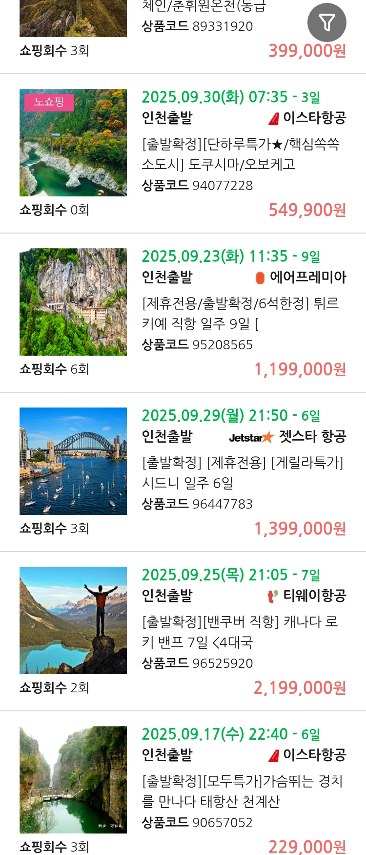 (9월 11일(목)) 땡처리 99.9% 확정 패키지