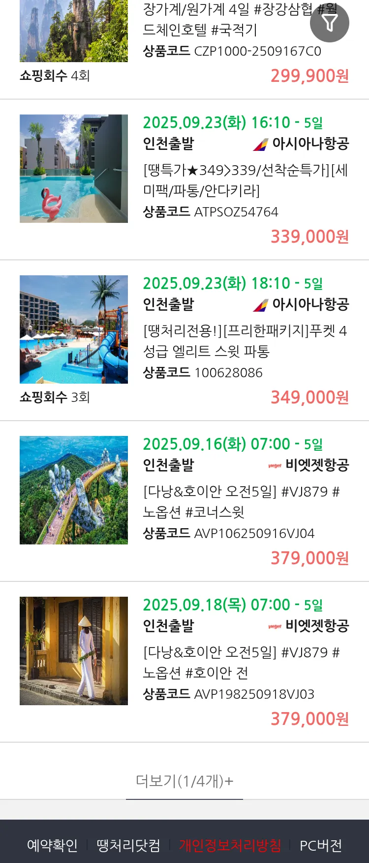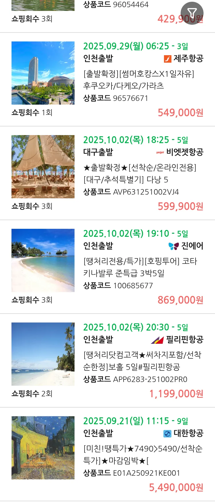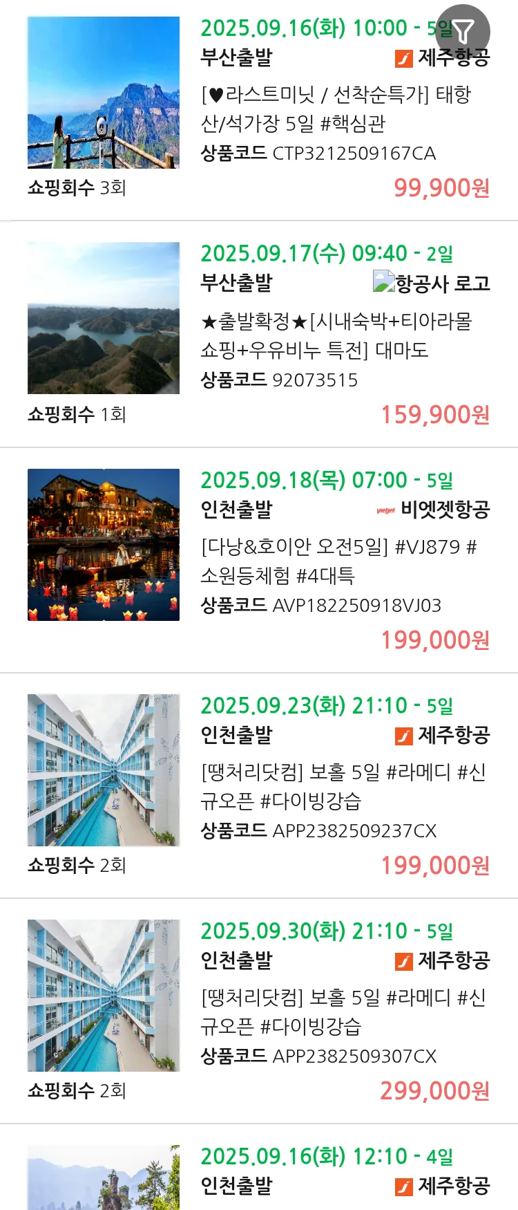 (9월 11일(목)) 땡처리 99.9% 확정 패키지