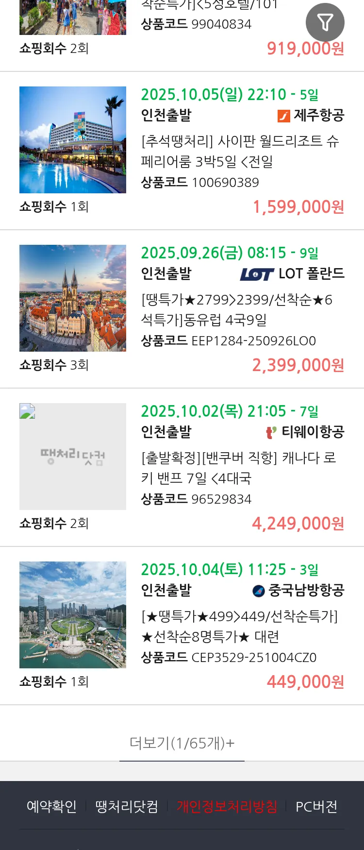(9월 13일(토)) 땡처리 99.9% 확정 패키지