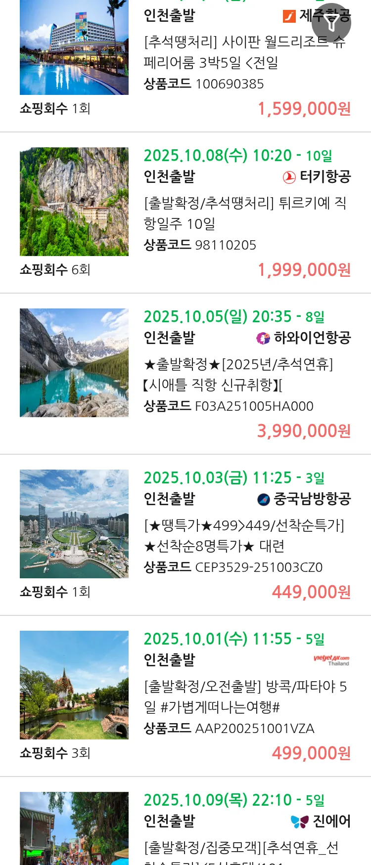 (9월 13일(토)) 땡처리 연휴 패키지 패키지