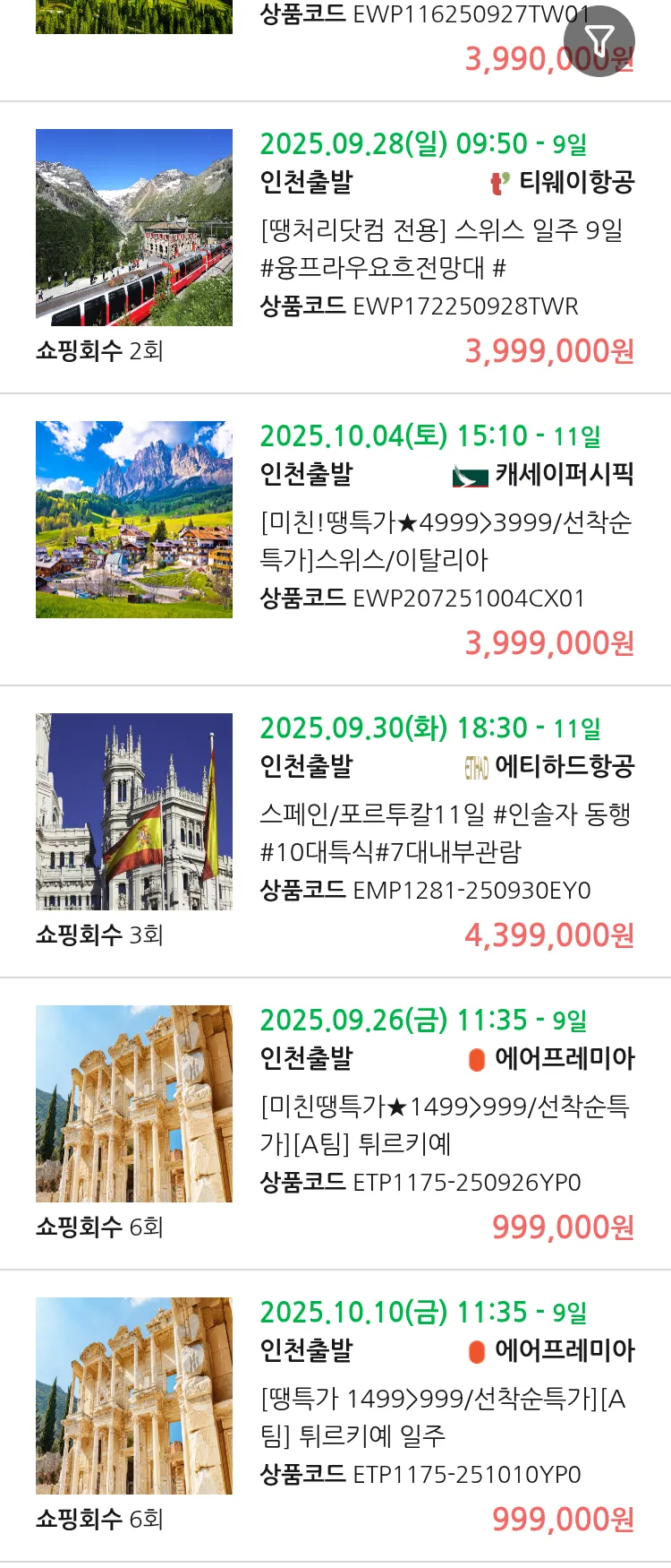 (9월 12일(금)) 땡처리 유럽 긴급 패키지