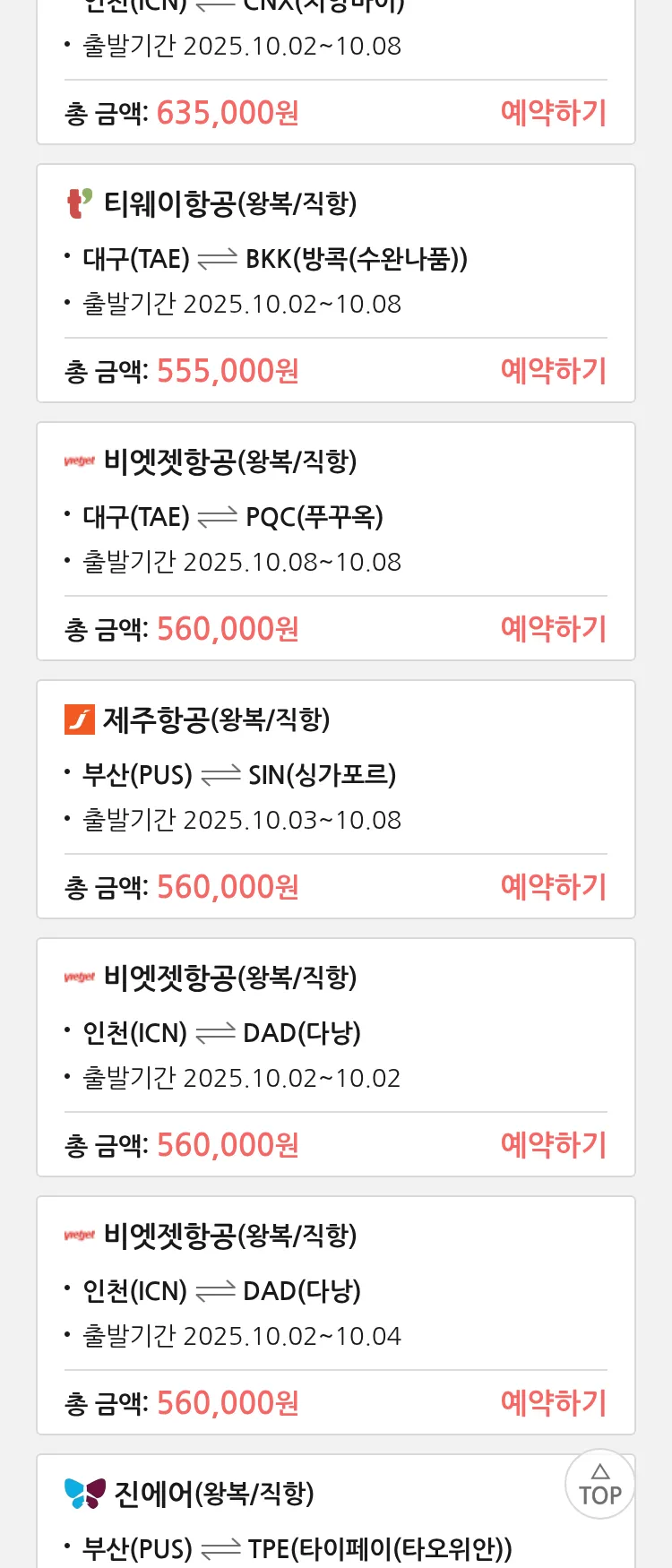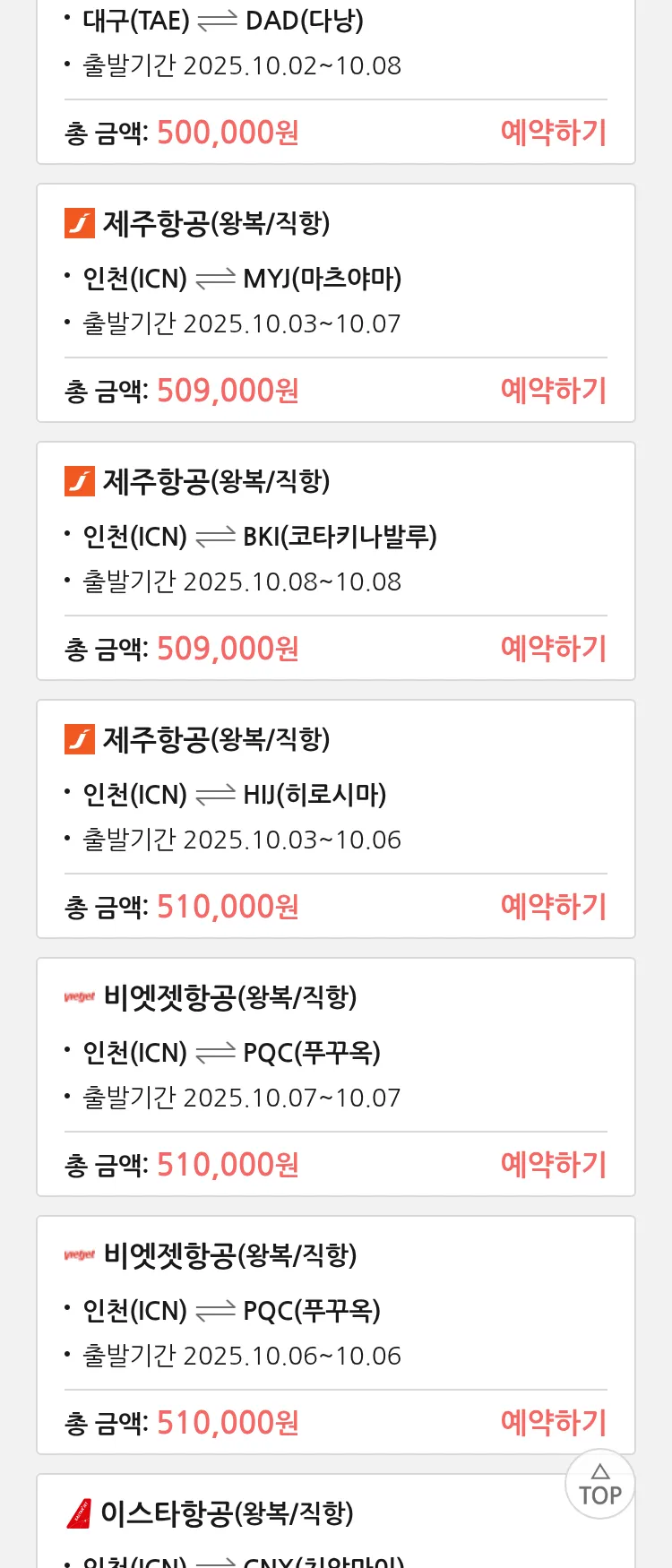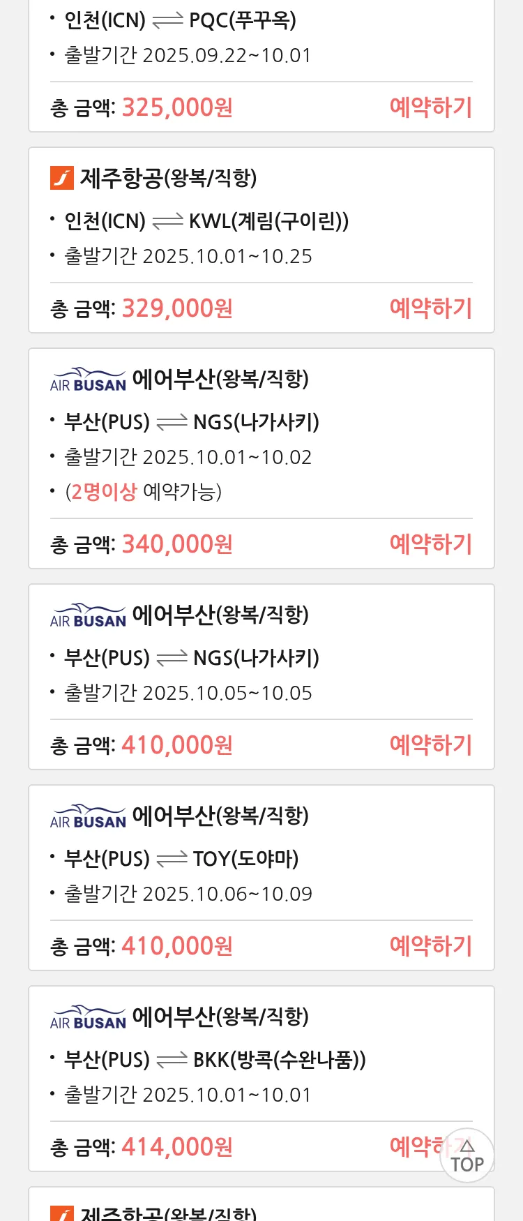 (9월 11일(목)) 땡처리 특가 항공권