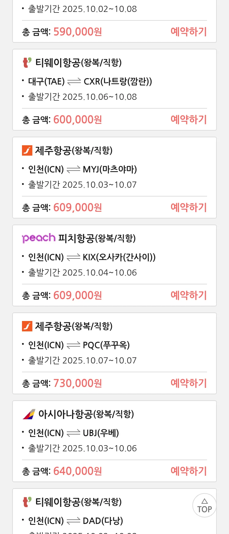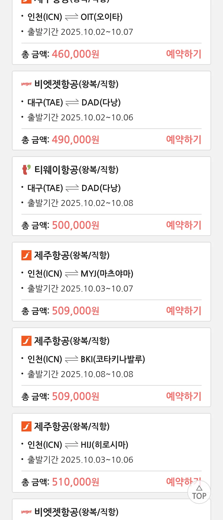(9월 12일(금)) 땡처리 특가 항공권