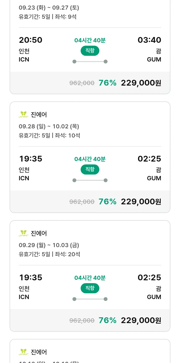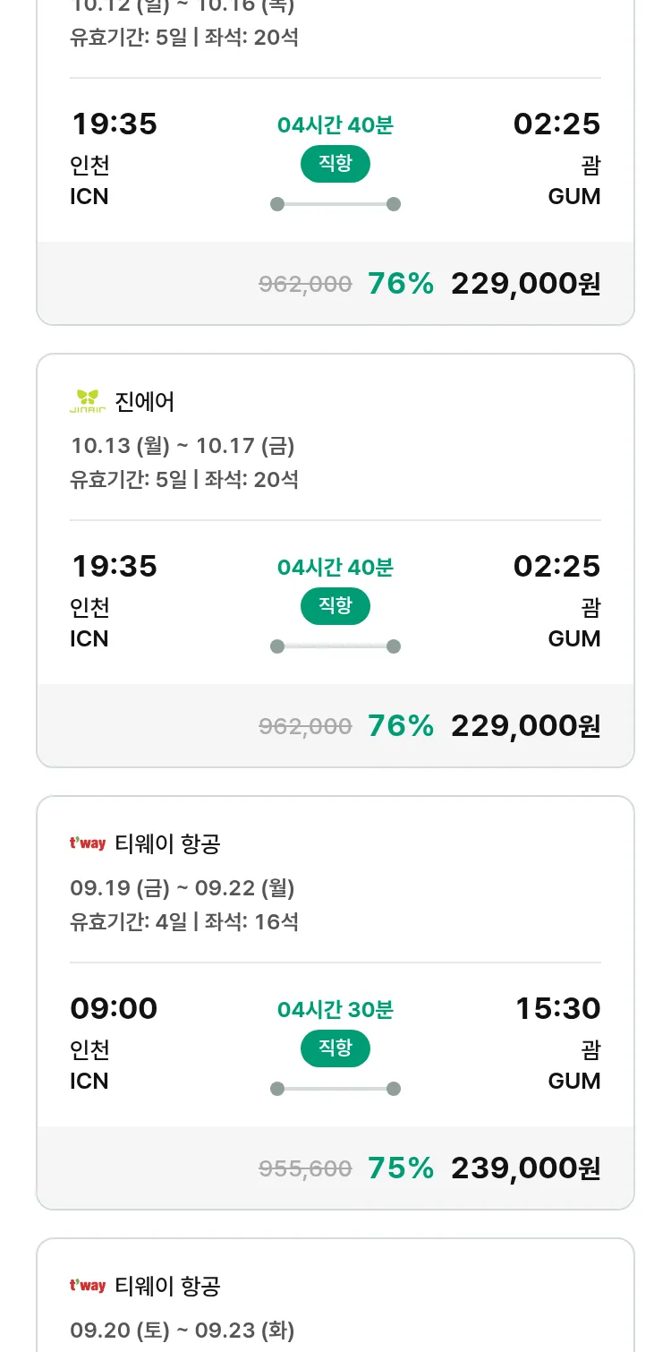 (9월 11일(목)) 땡처리 특가 항공권