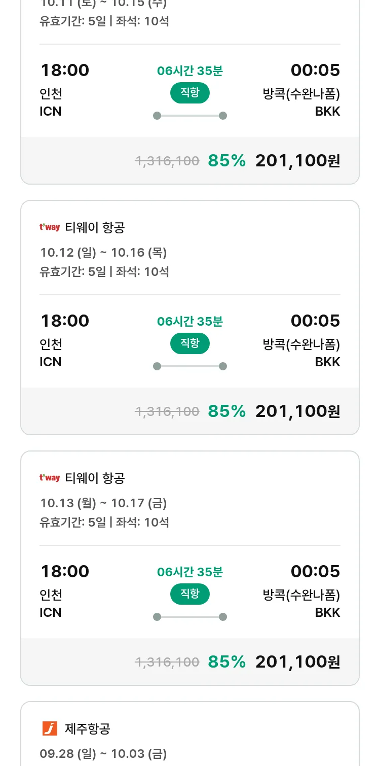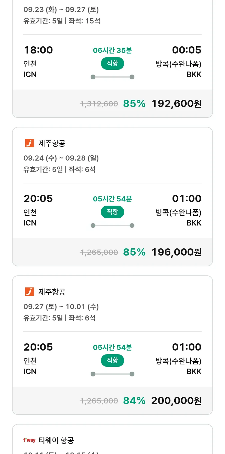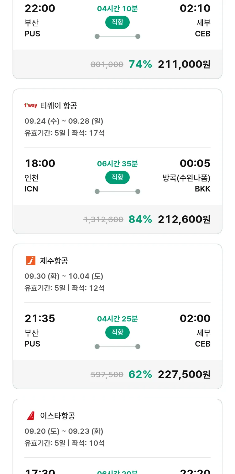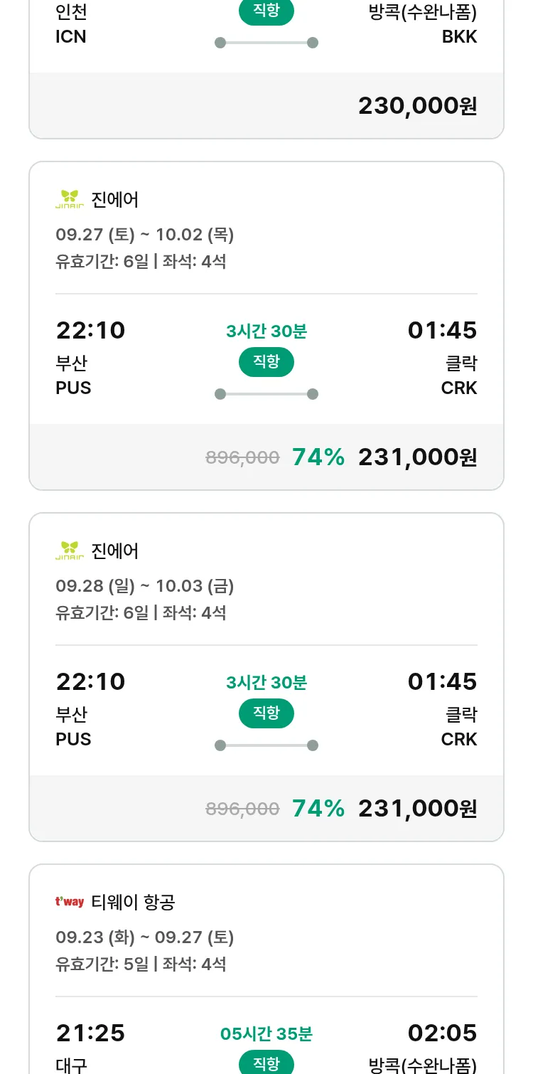 (9월 11일(목)) 땡처리 특가 항공권