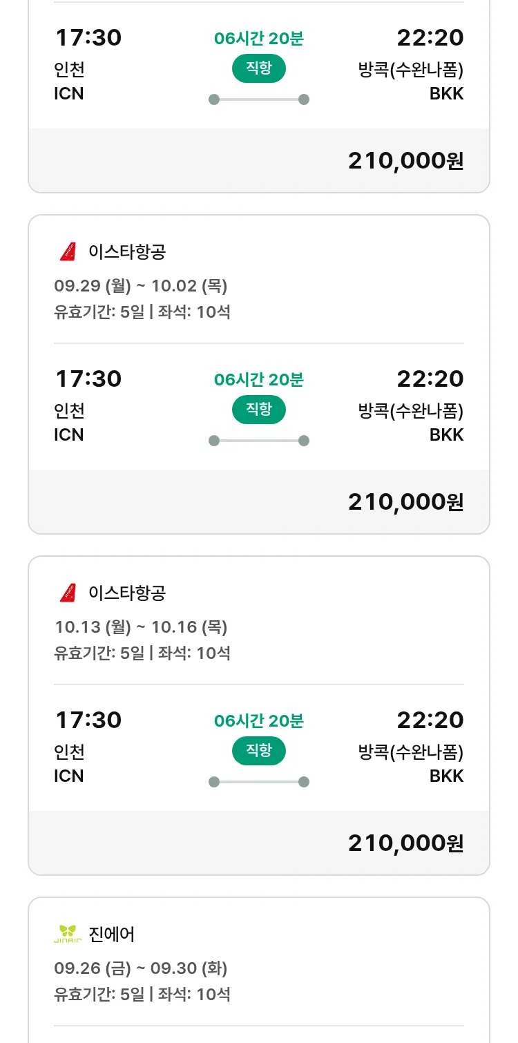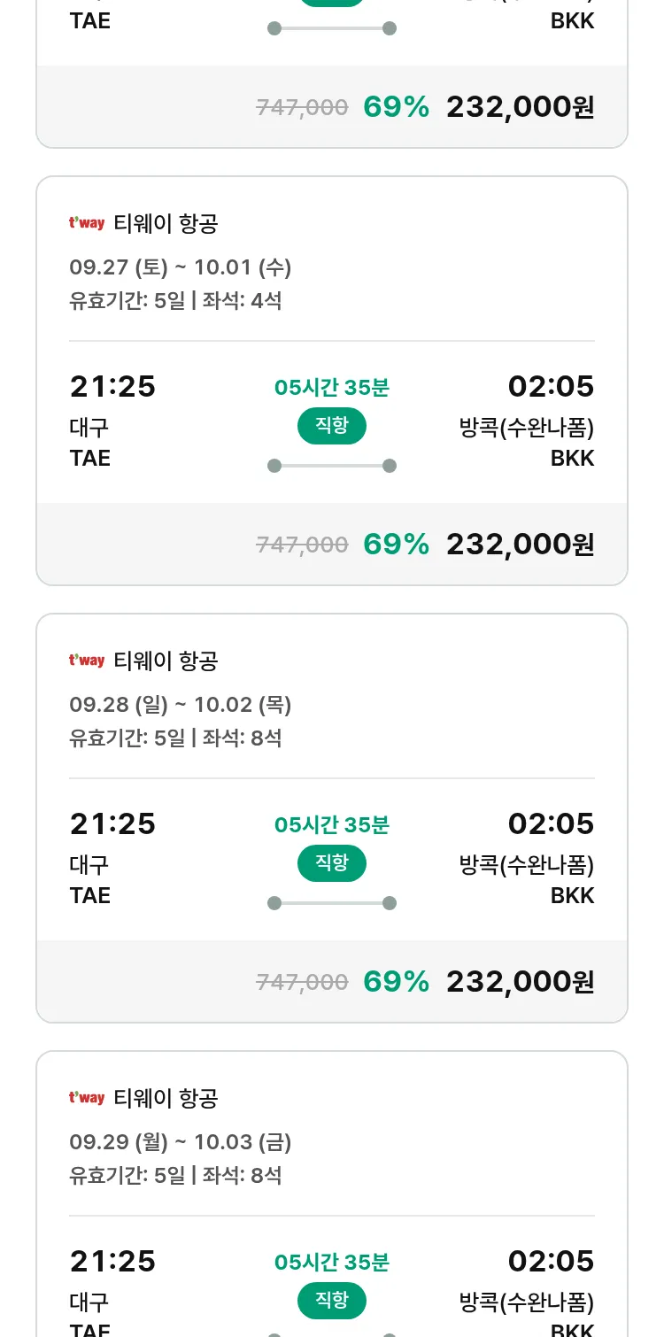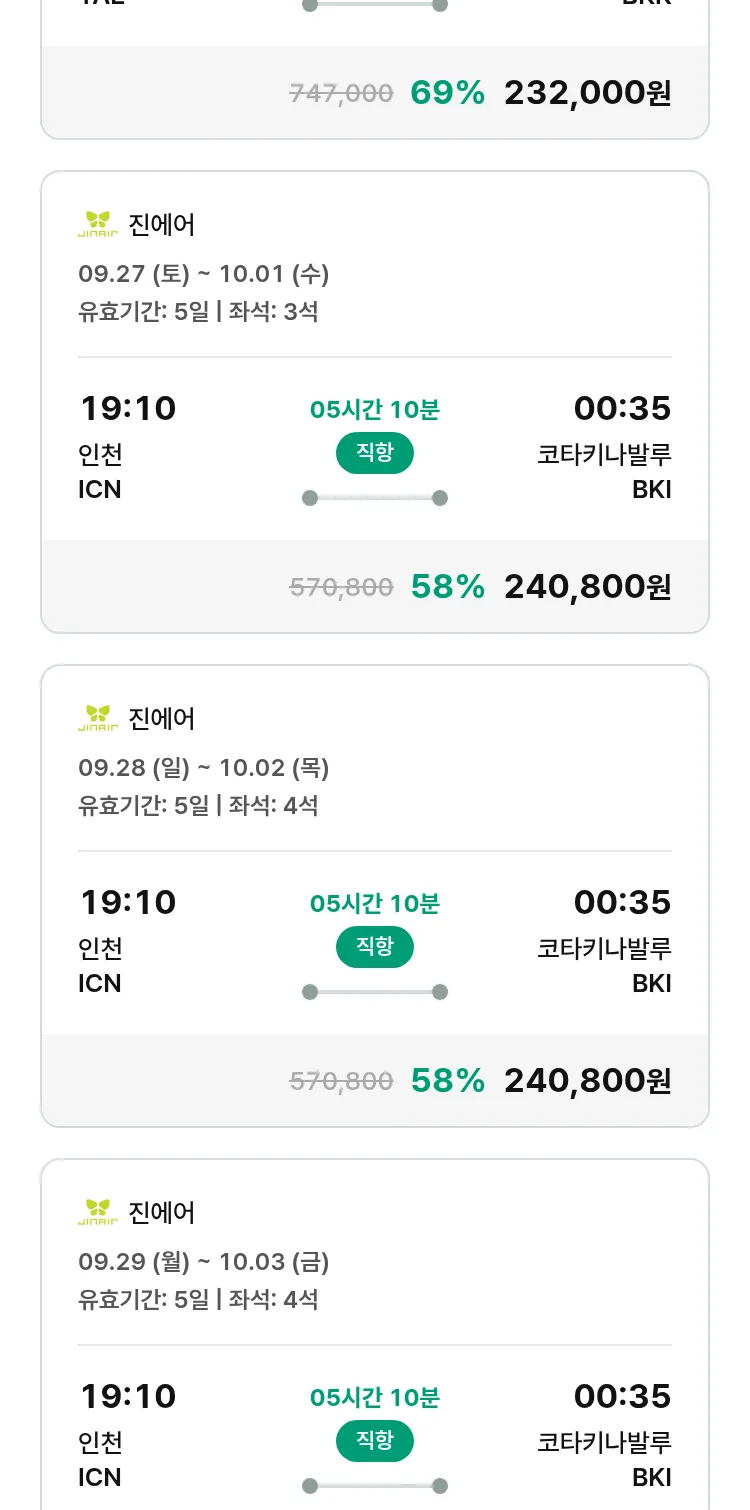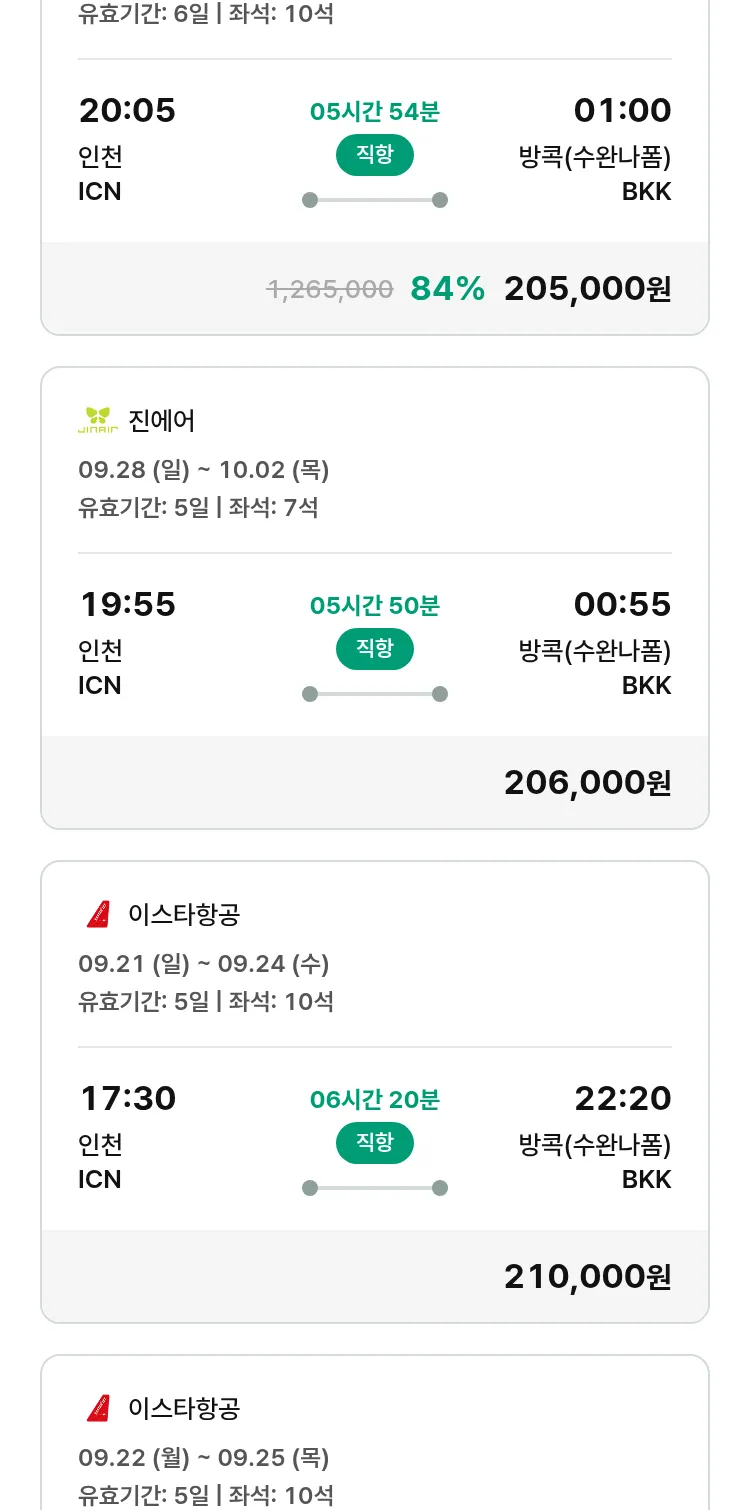 (9월 11일(목)) 땡처리 특가 항공권