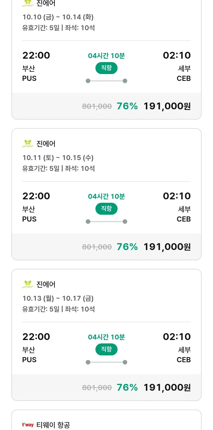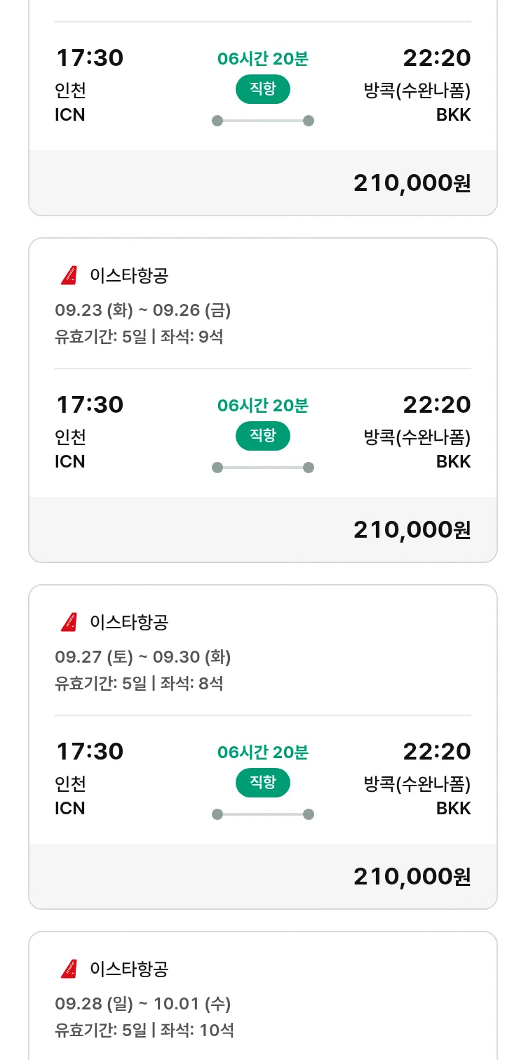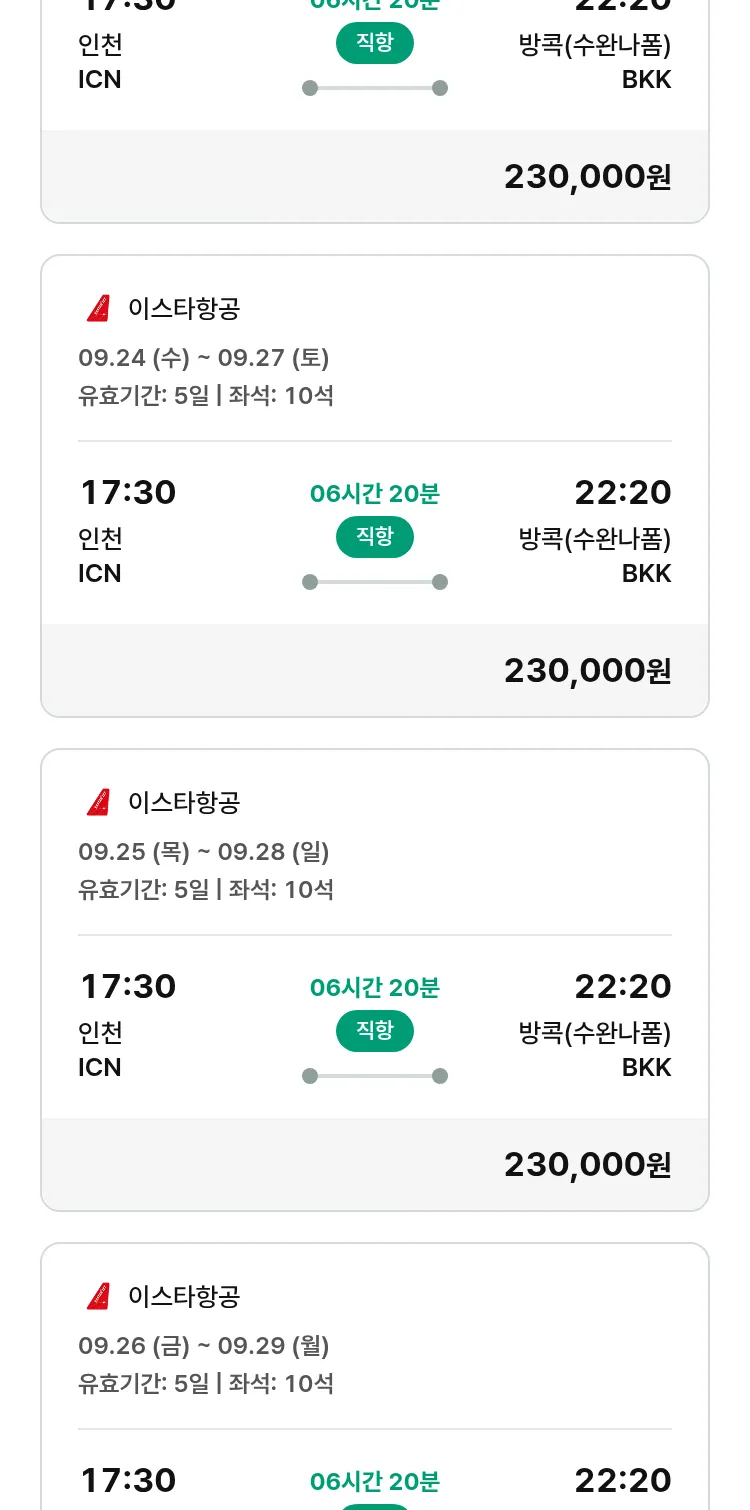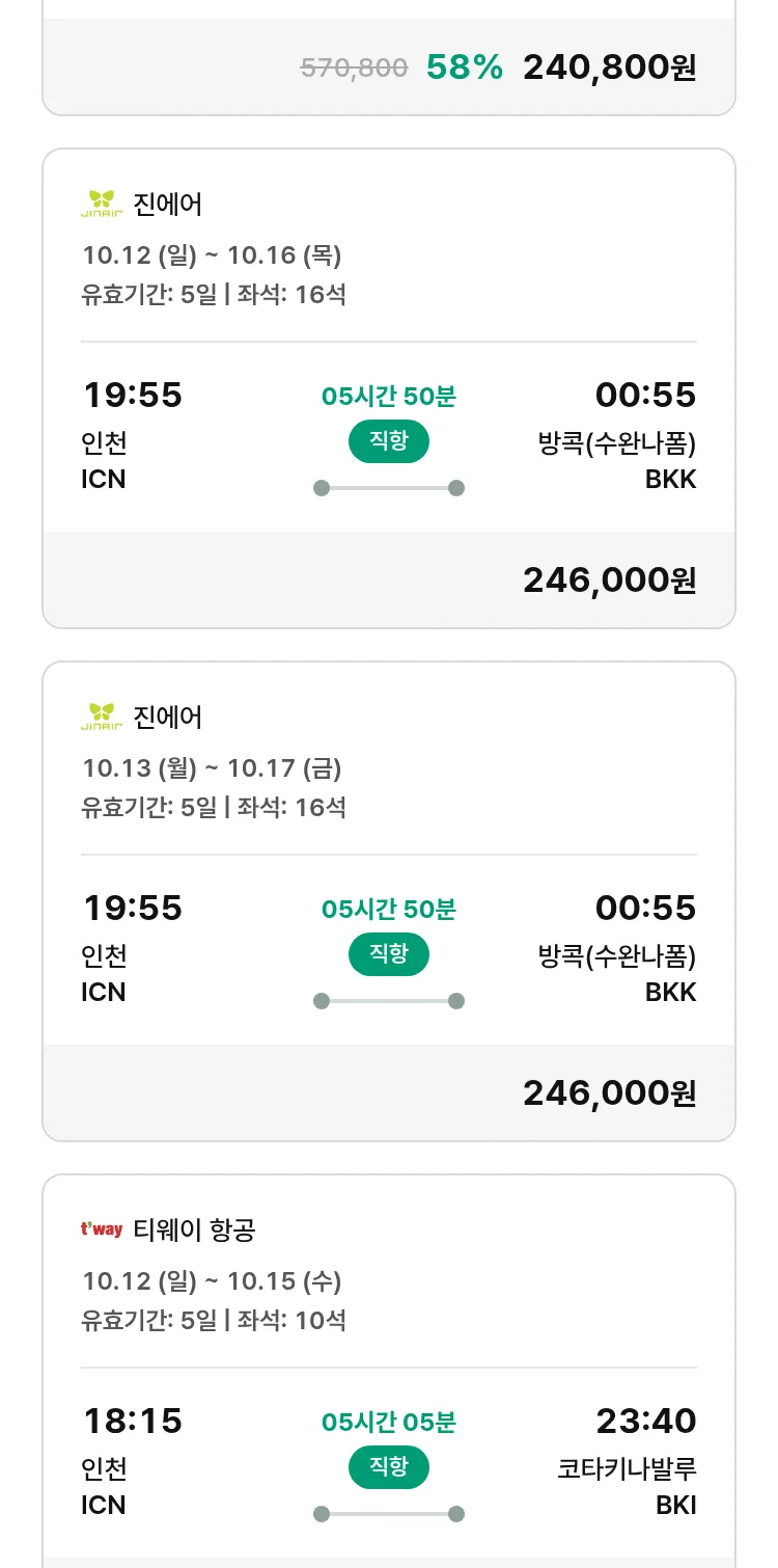 (9월 11일(목)) 땡처리 특가 항공권