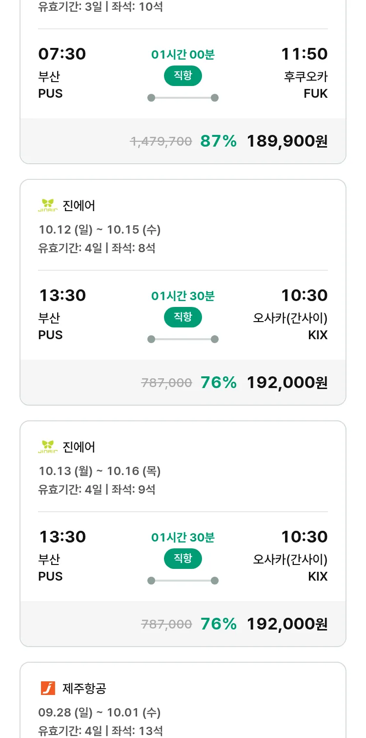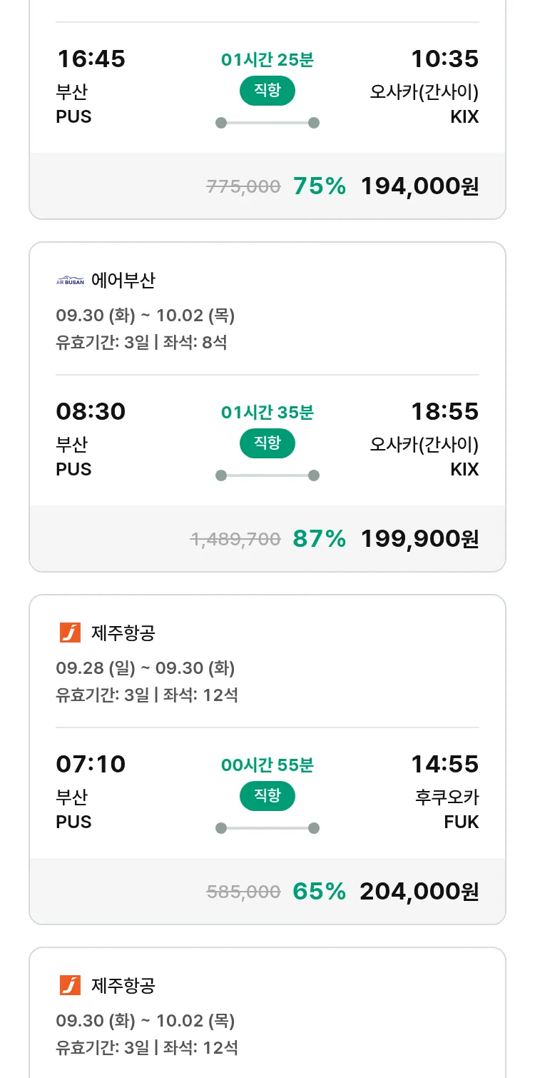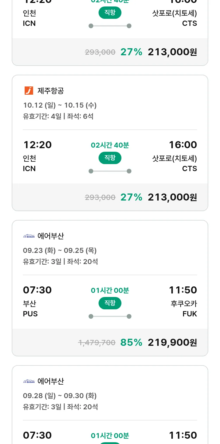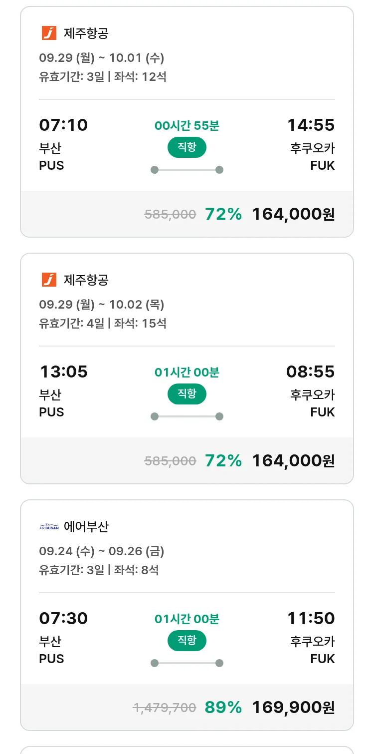 (9월 11일(목)) 모두투어 일본 특가 항공권