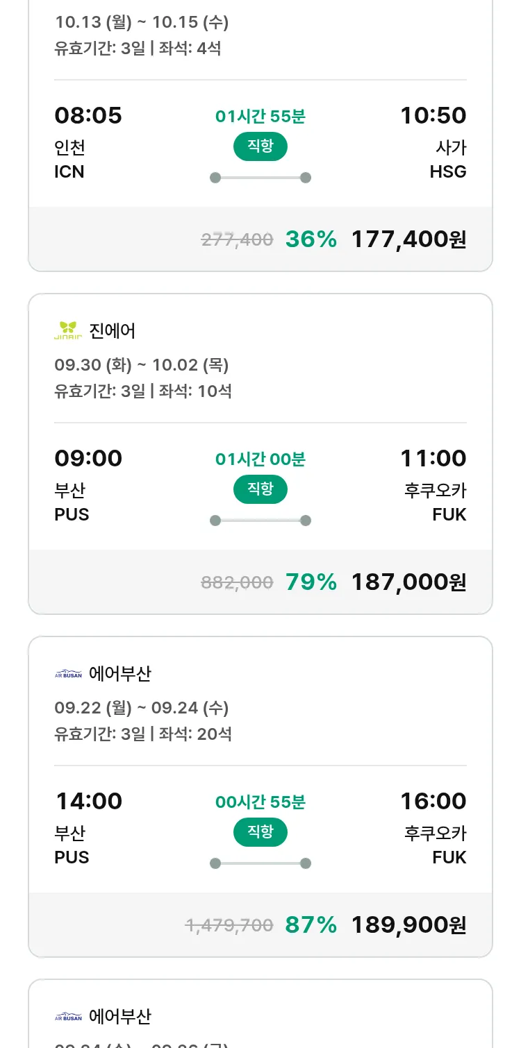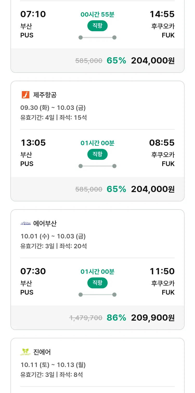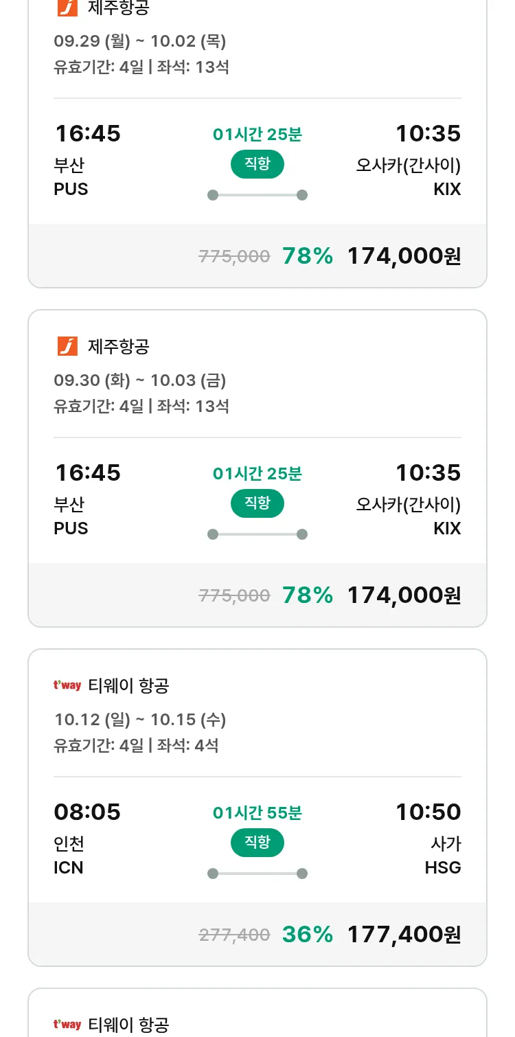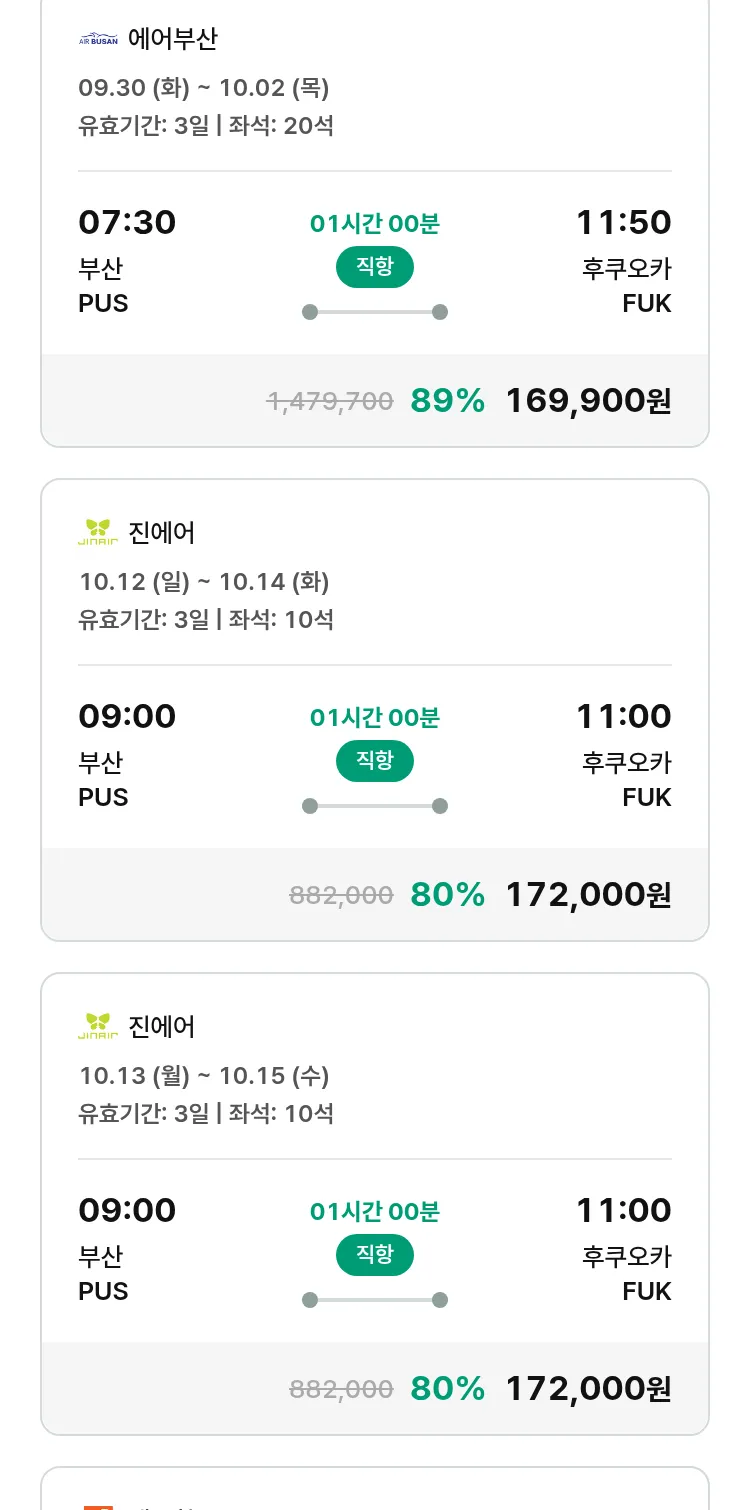 (9월 11일(목)) 모두투어 일본 특가 항공권