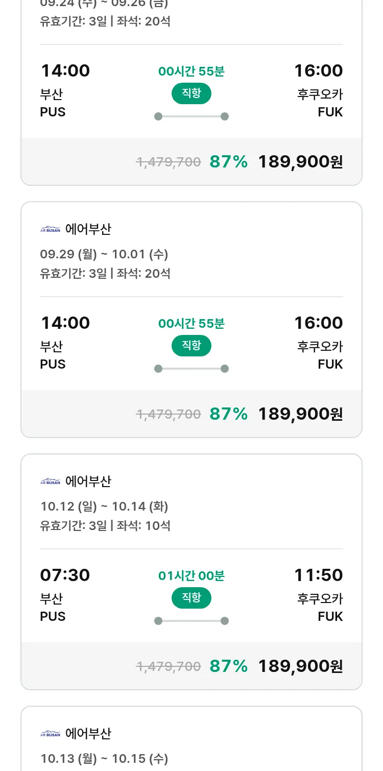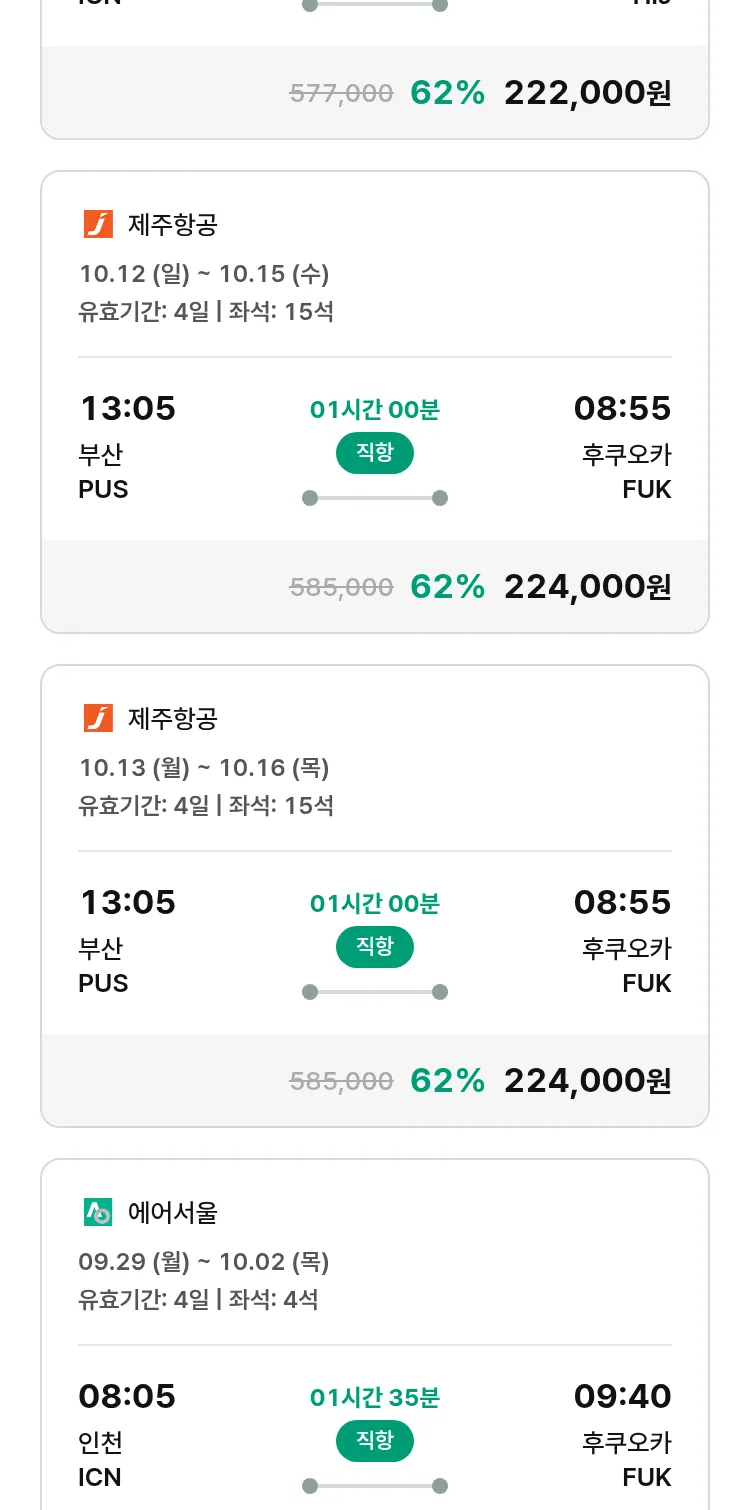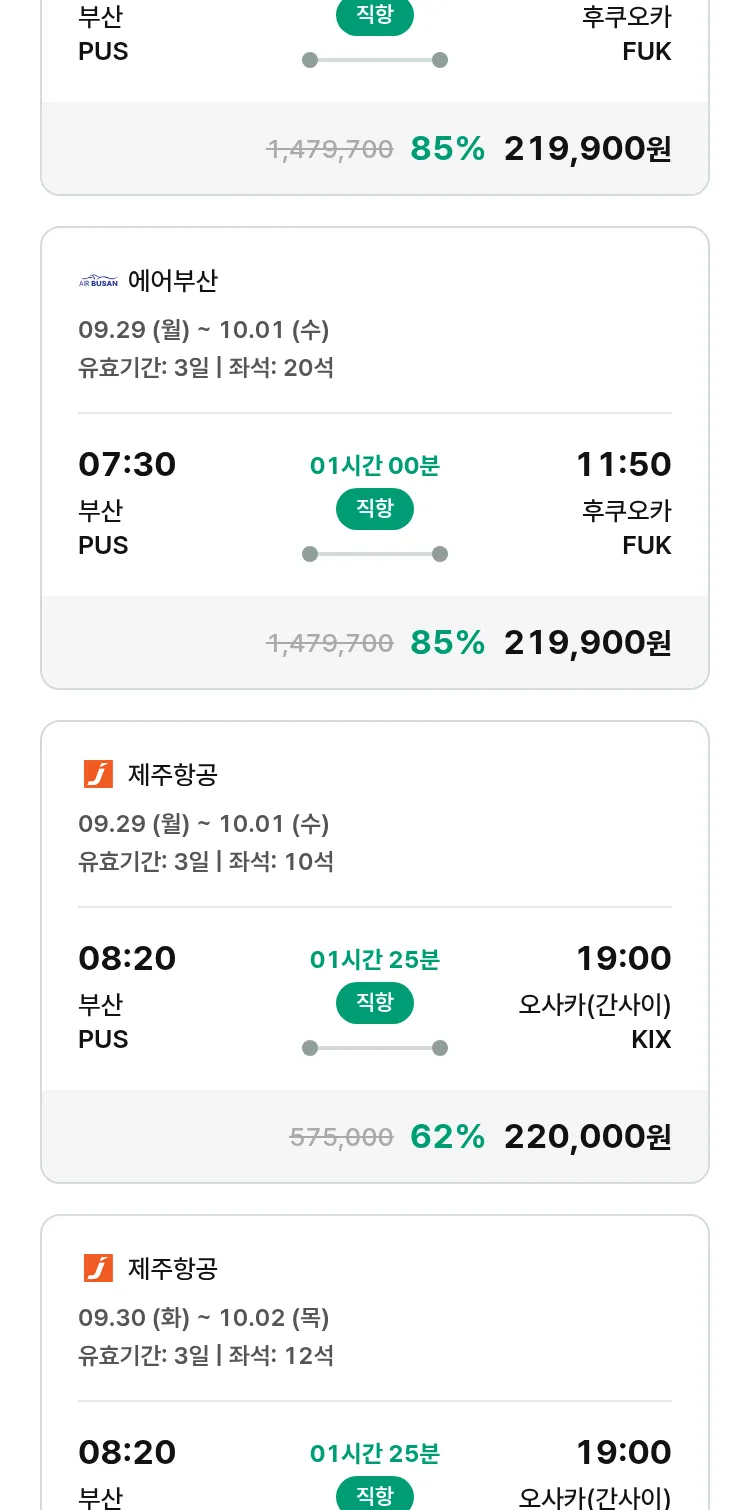 (9월 11일(목)) 땡처리 99.9% 확정 패키지