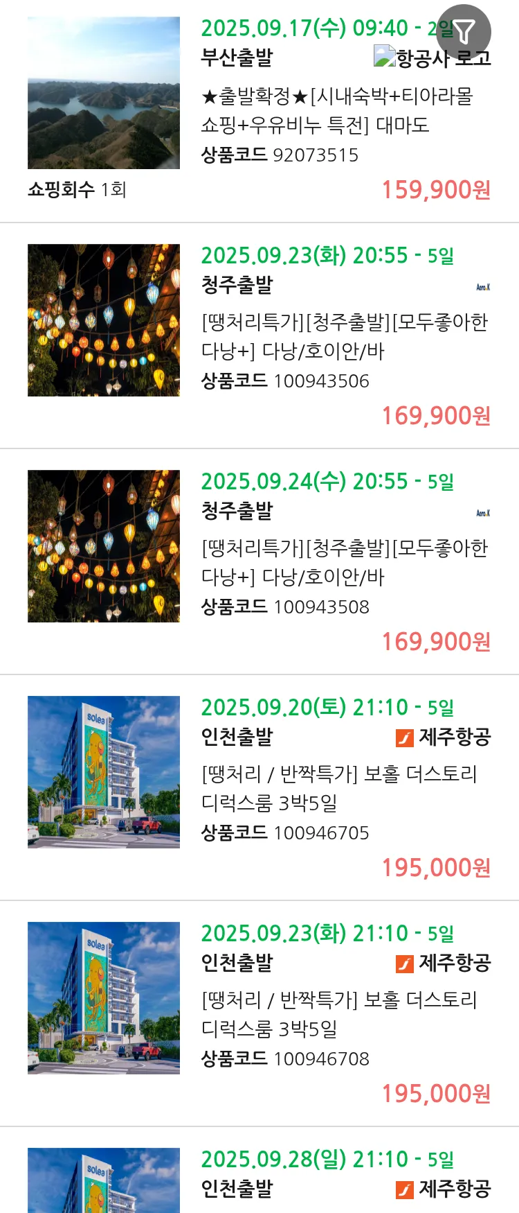 (9월 14일(일)) 땡처리 99.9% 확정 패키지
