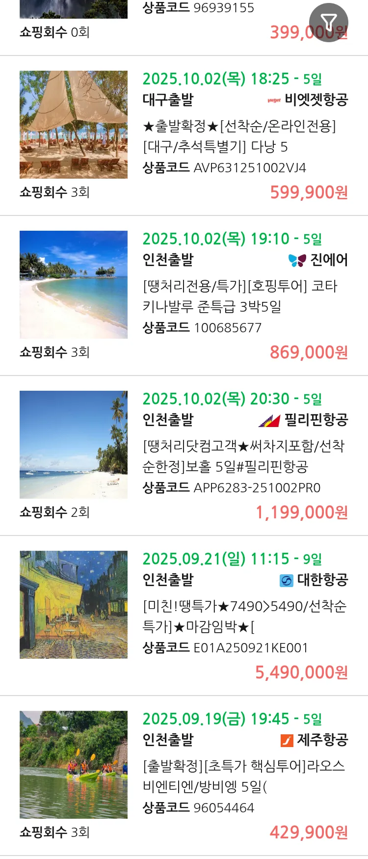 (9월 12일(금)) 땡처리 99.9% 확정 패키지