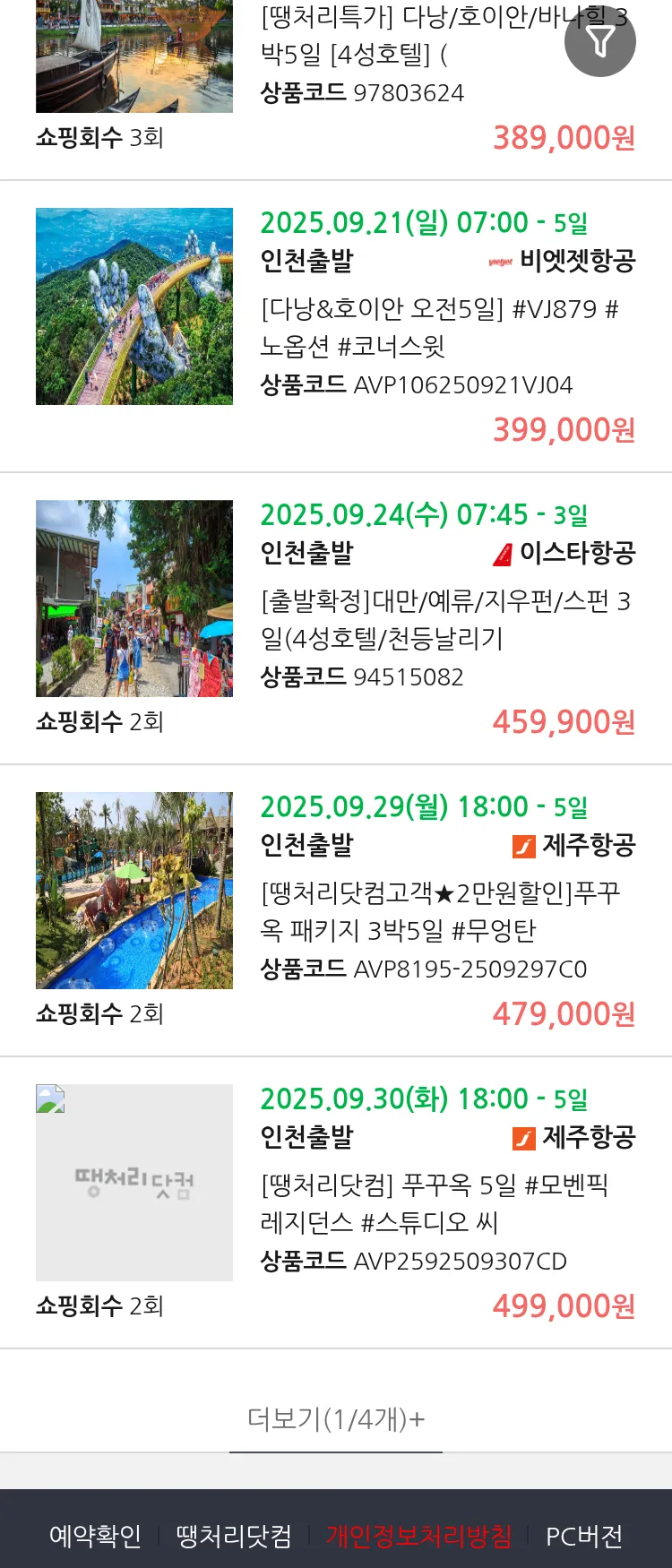 (9월 14일(일)) 땡처리 99.9% 확정 패키지
