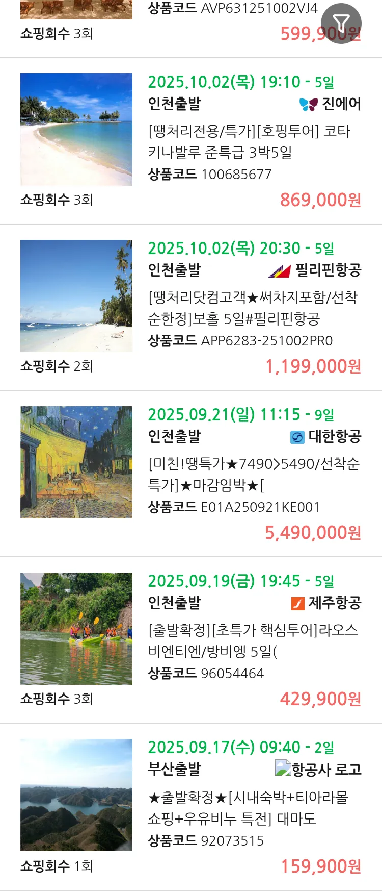 (9월 12일(금)) 땡처리 99.9% 확정 패키지
