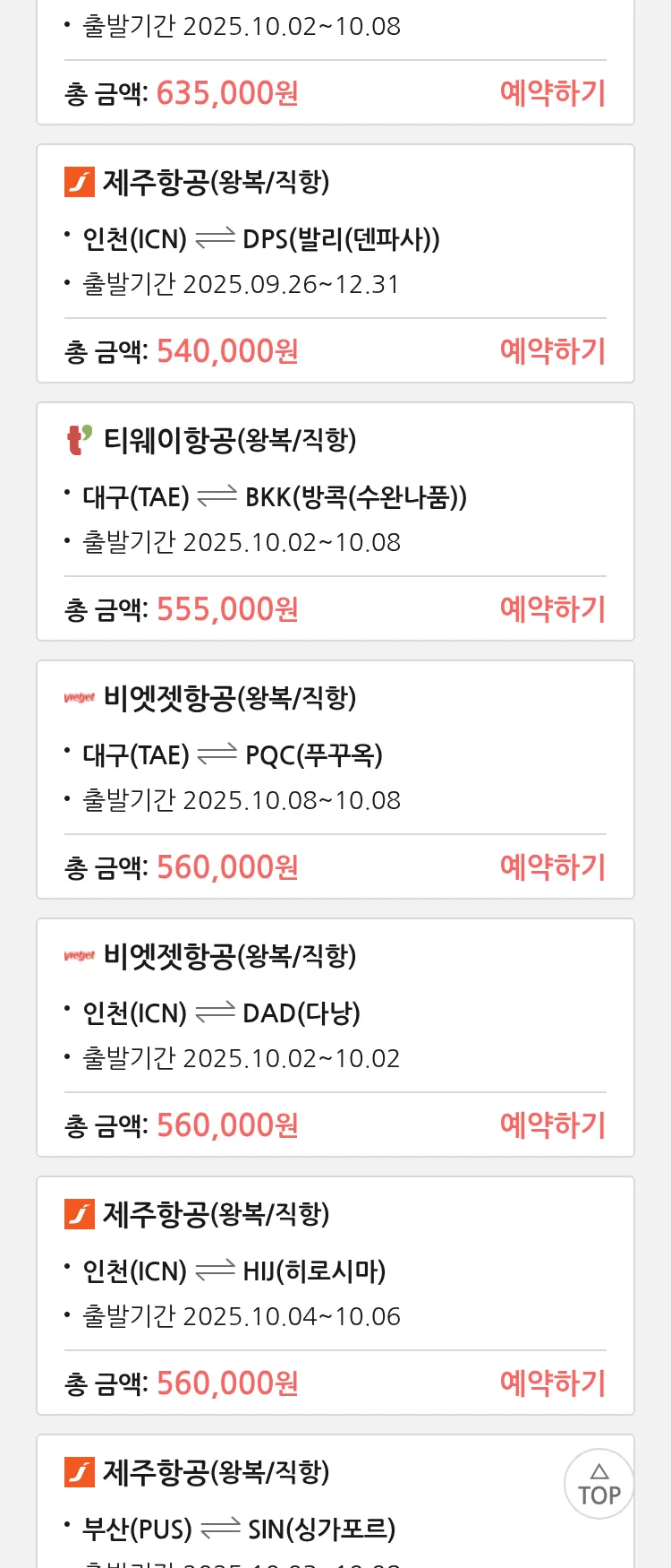 (9월 15일(월)) 땡처리 특가 항공권