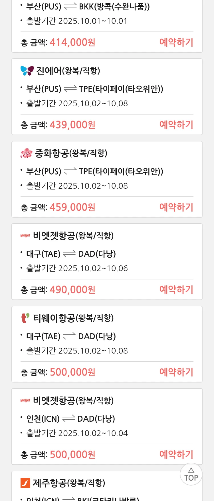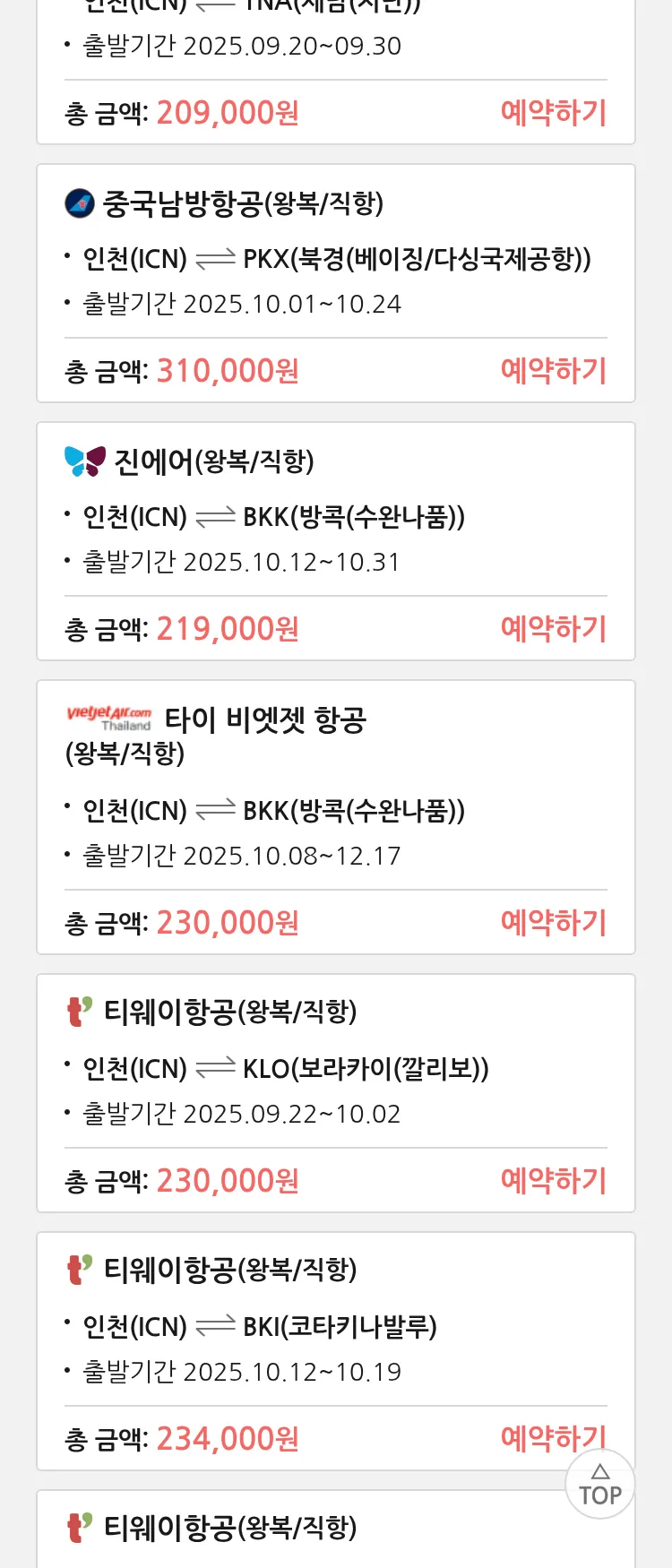 (9월 14일(일)) 땡처리 특가 항공권
