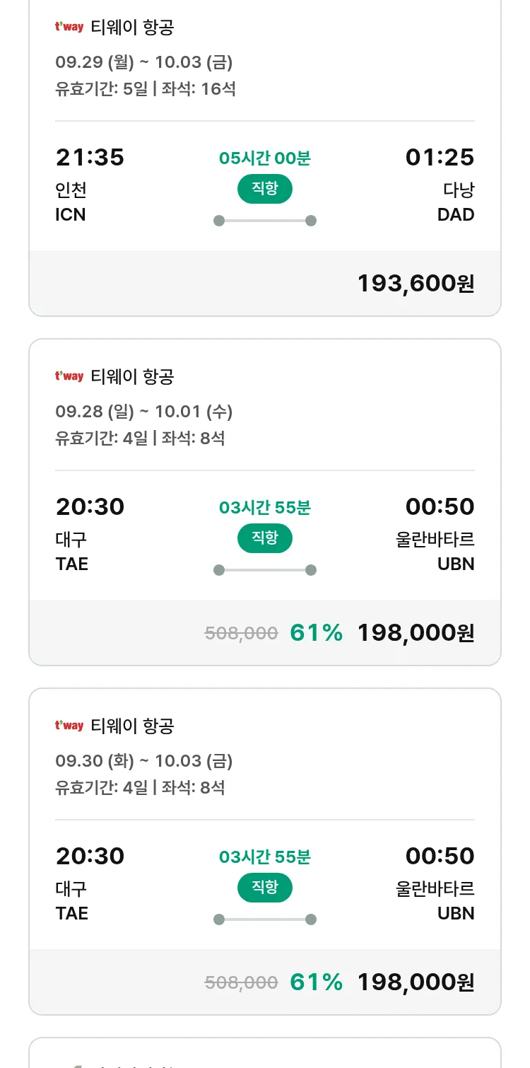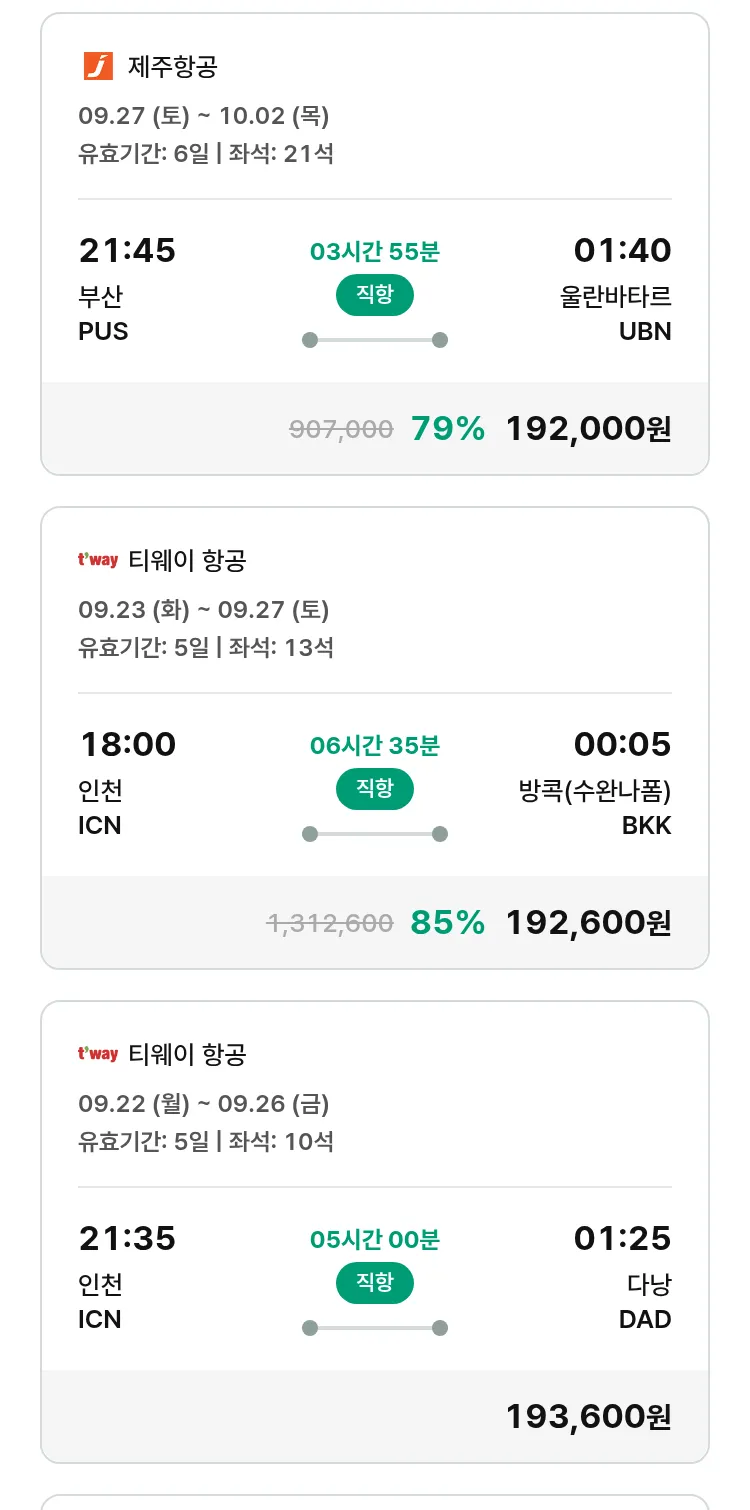(9월 13일(토)) 땡처리 99.9% 확정 패키지
