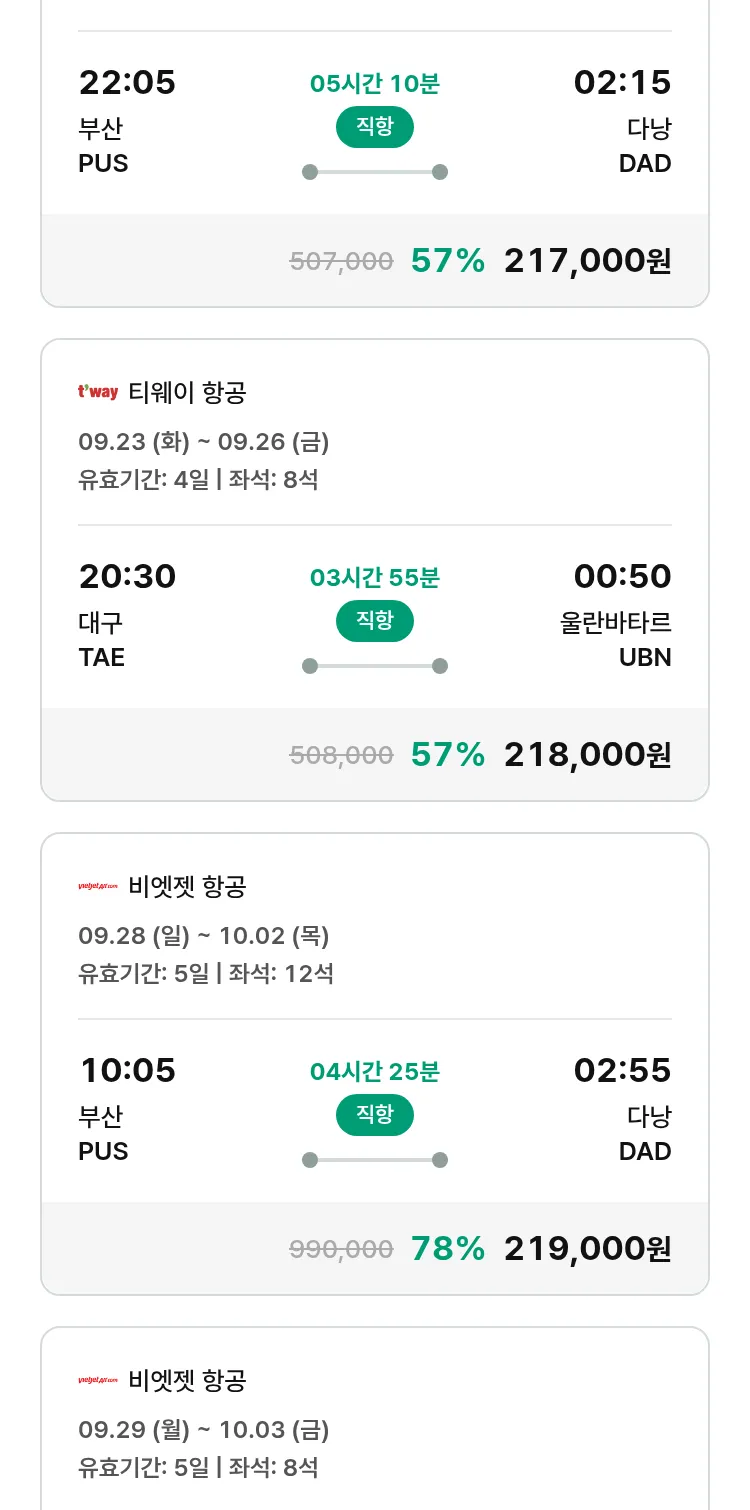 (9월 12일(금)) 땡처리 99.9% 확정 패키지