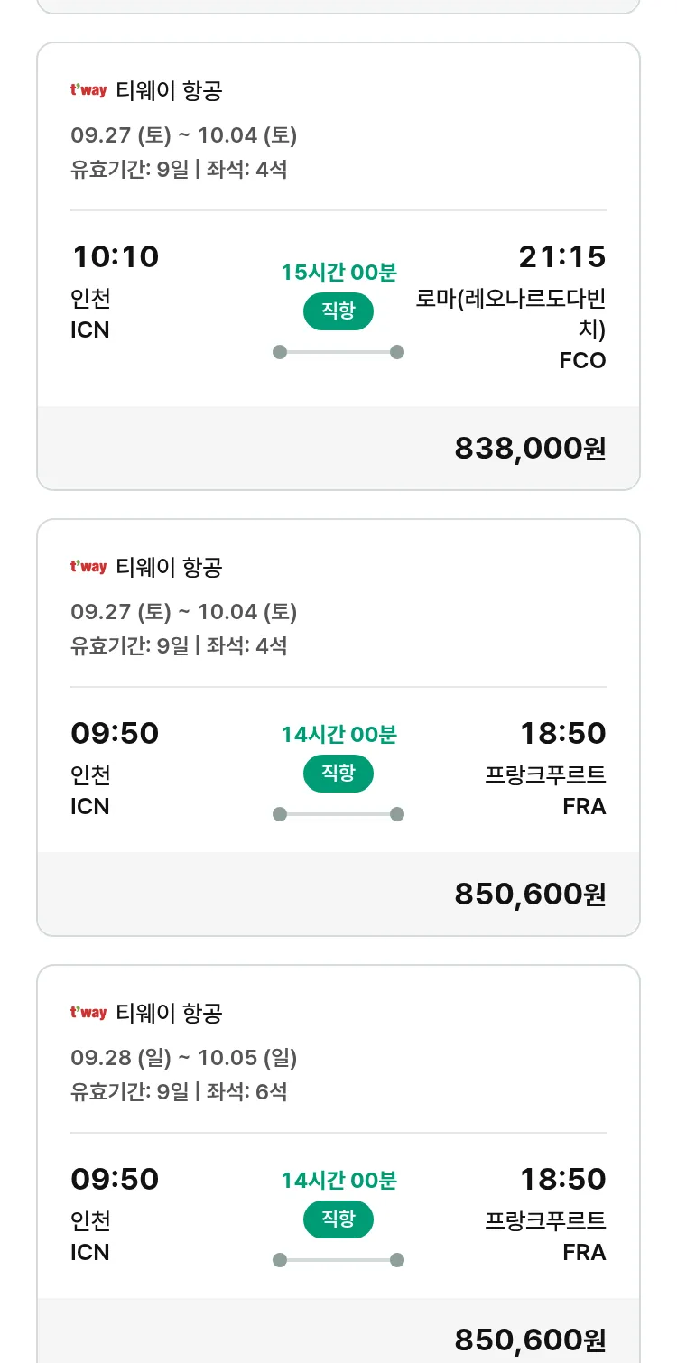 (9월 15일(월)) 땡처리 유럽 긴급 패키지