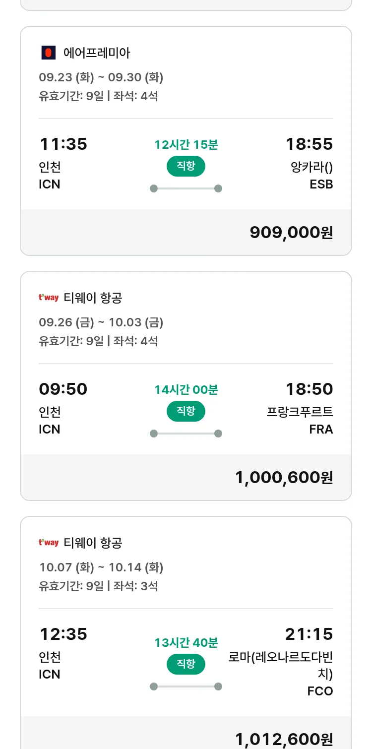 (9월 14일(일)) 땡처리 유럽 긴급 패키지
