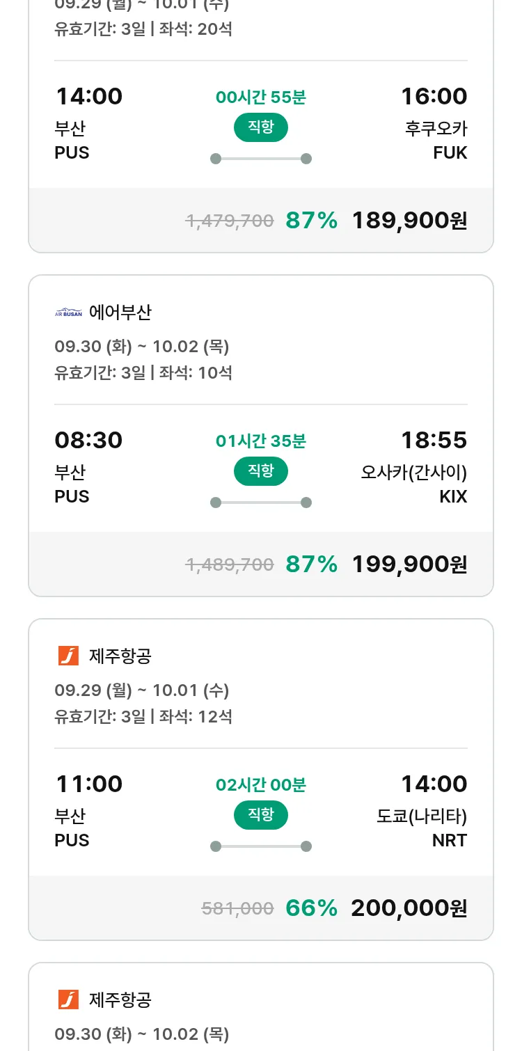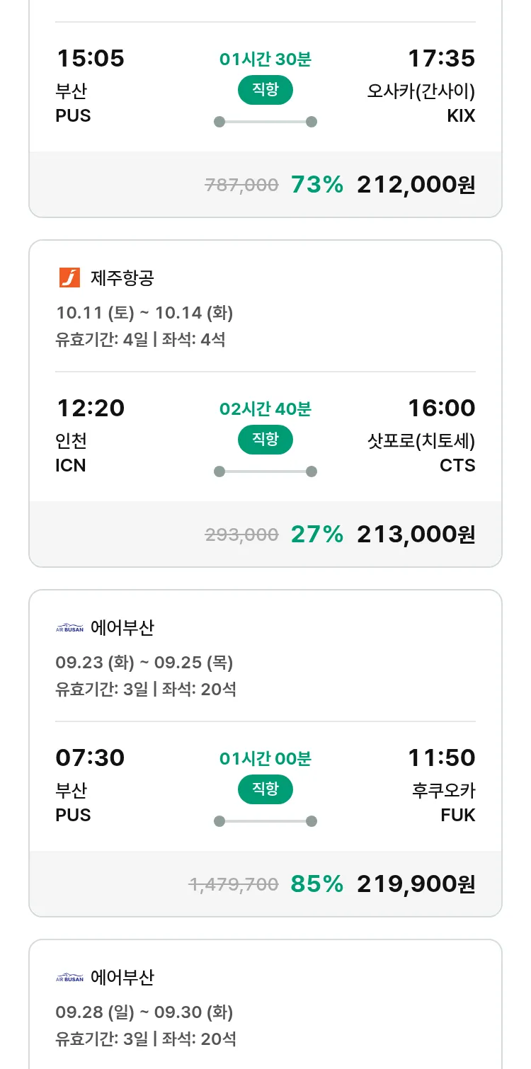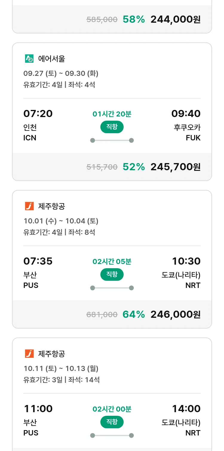 (9월 14일(일)) 모두투어 일본 특가 항공권