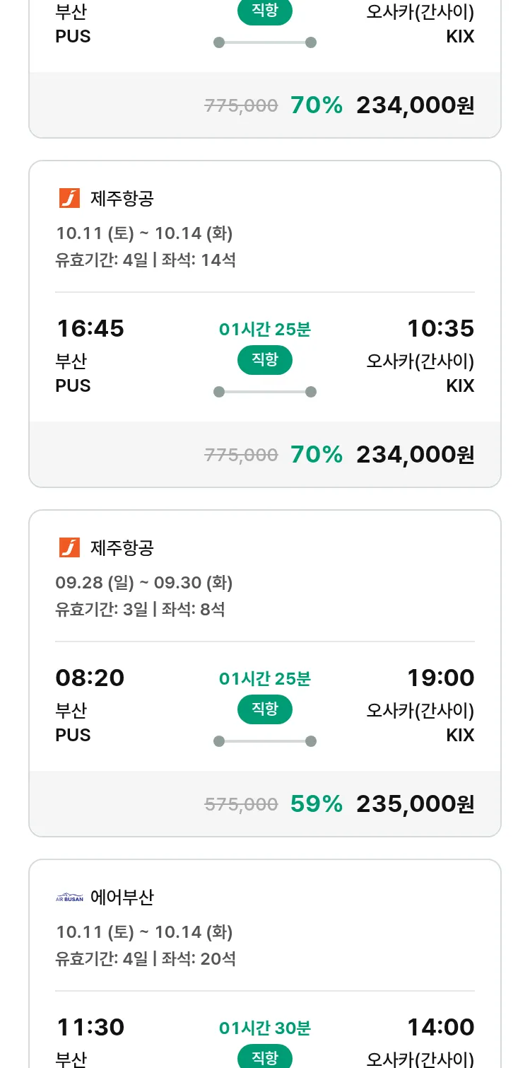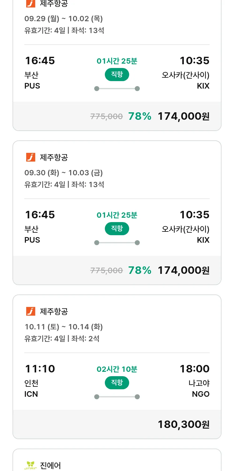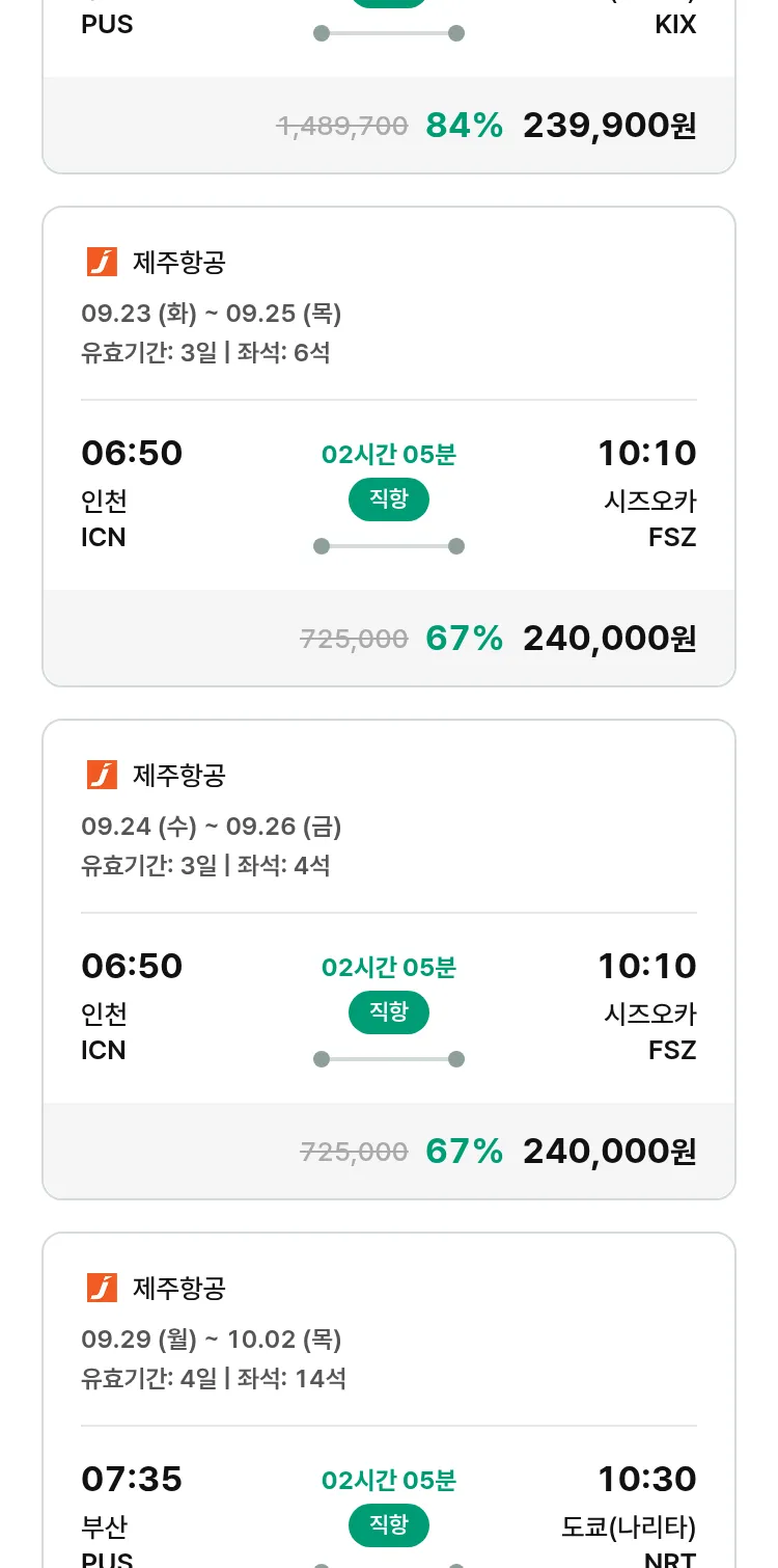 (9월 14일(일)) 모두투어 일본 특가 항공권
