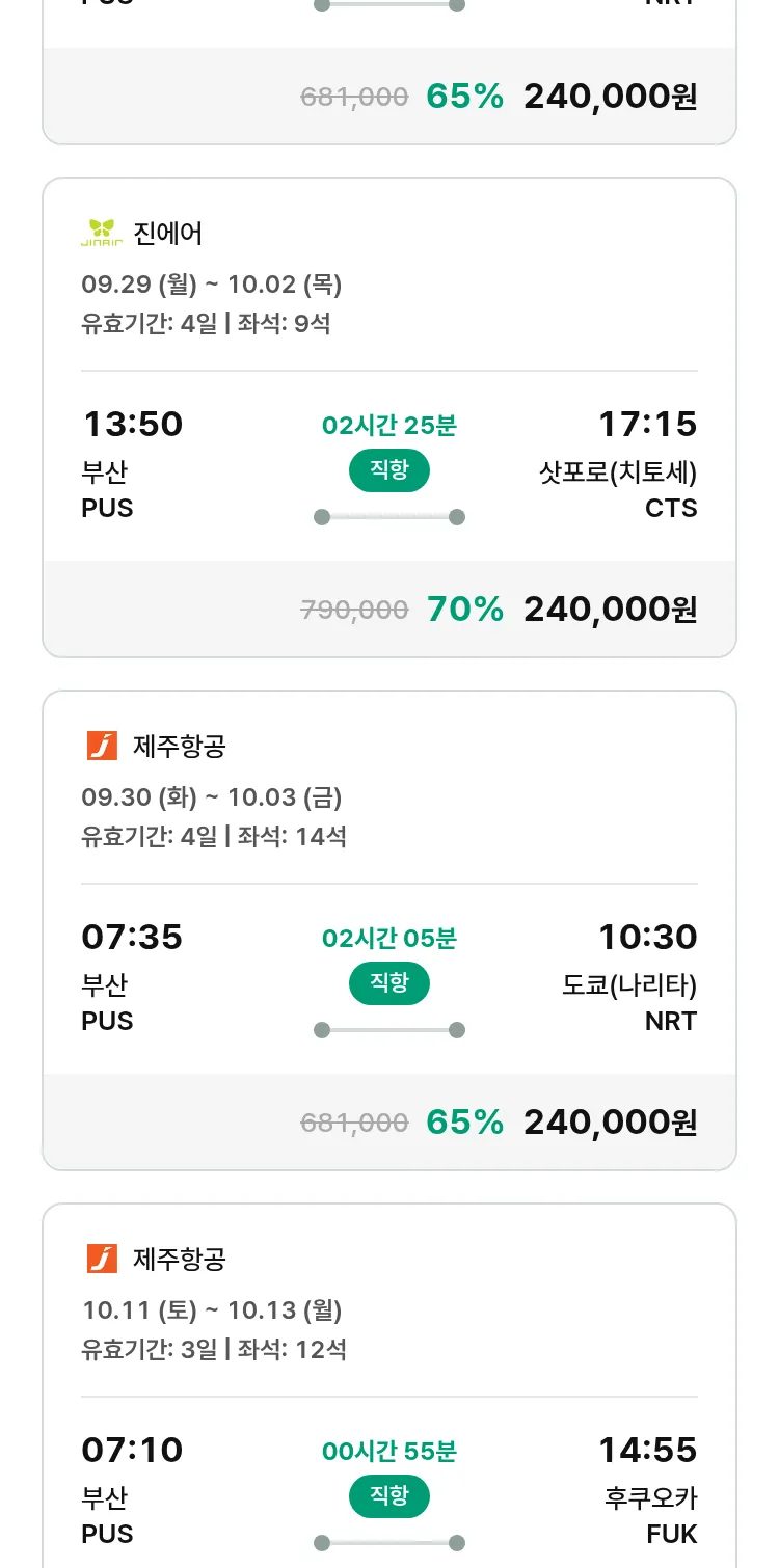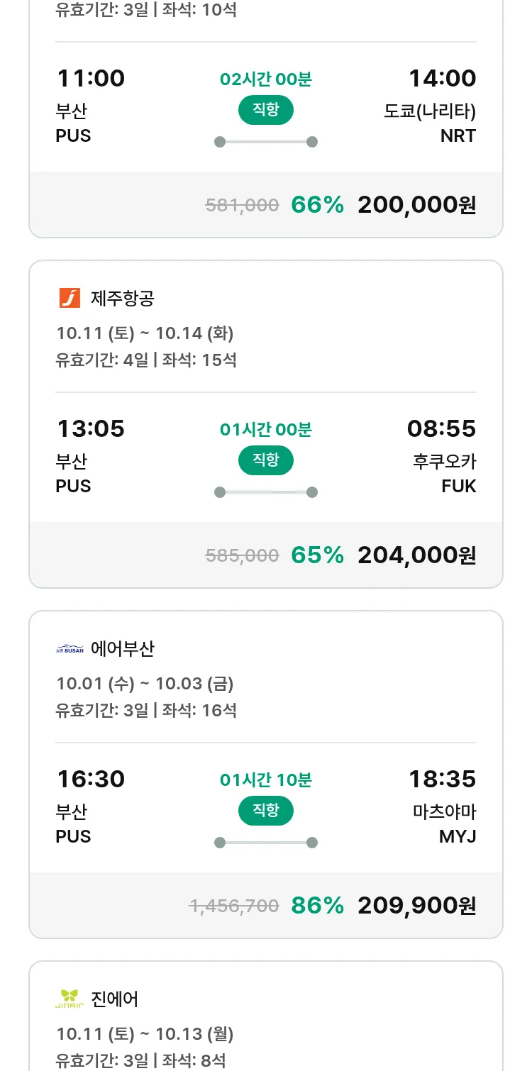 (9월 15일(월)) 모두투어 일본 특가 항공권
