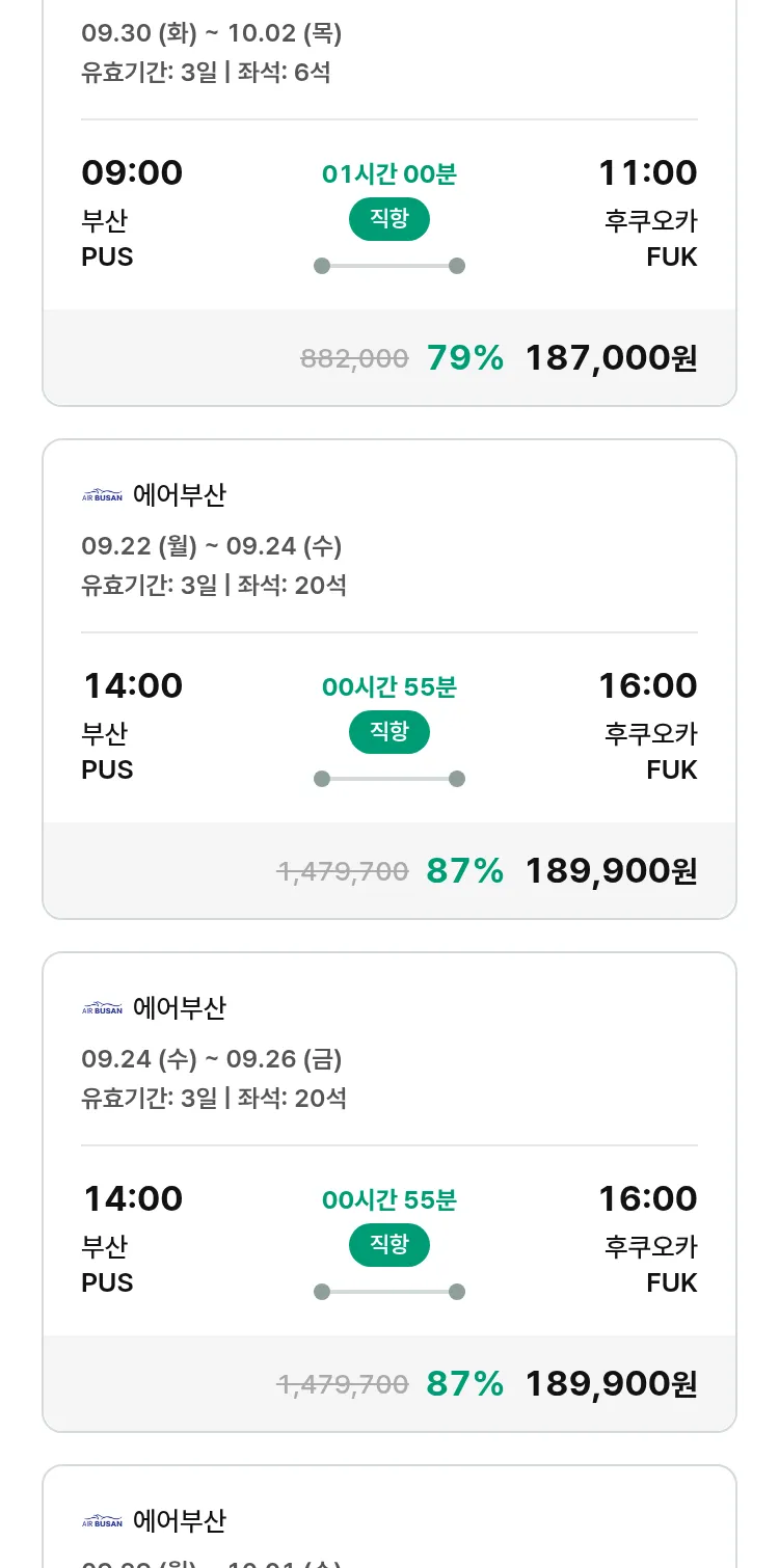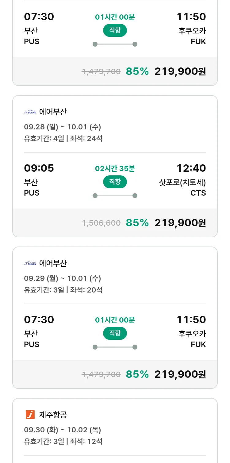 (9월 15일(월)) 땡처리 99.9% 확정 패키지