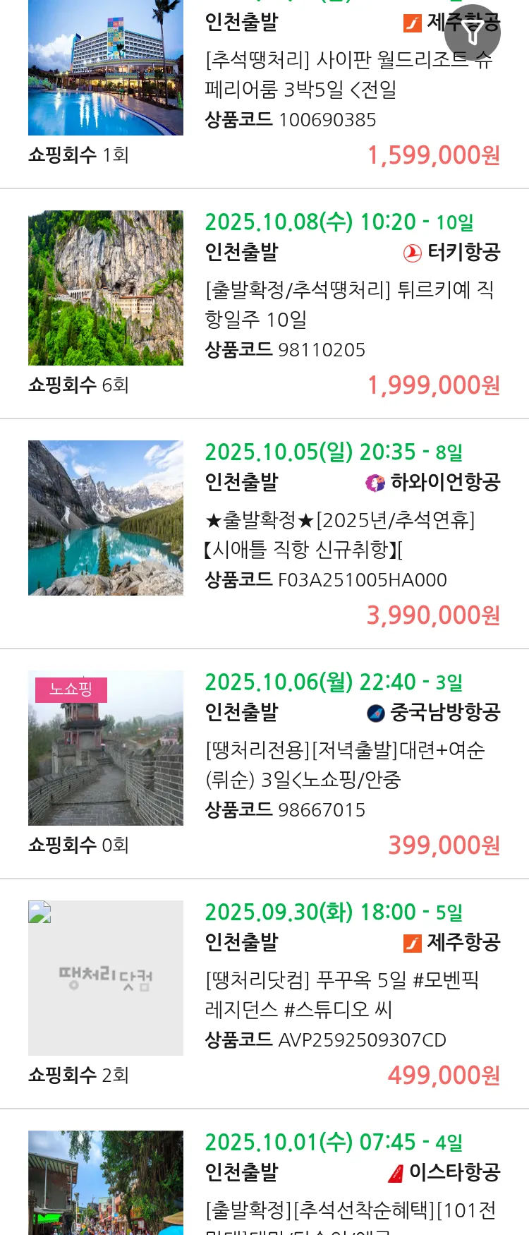 (9월 15일(월)) 땡처리 연휴 패키지 패키지