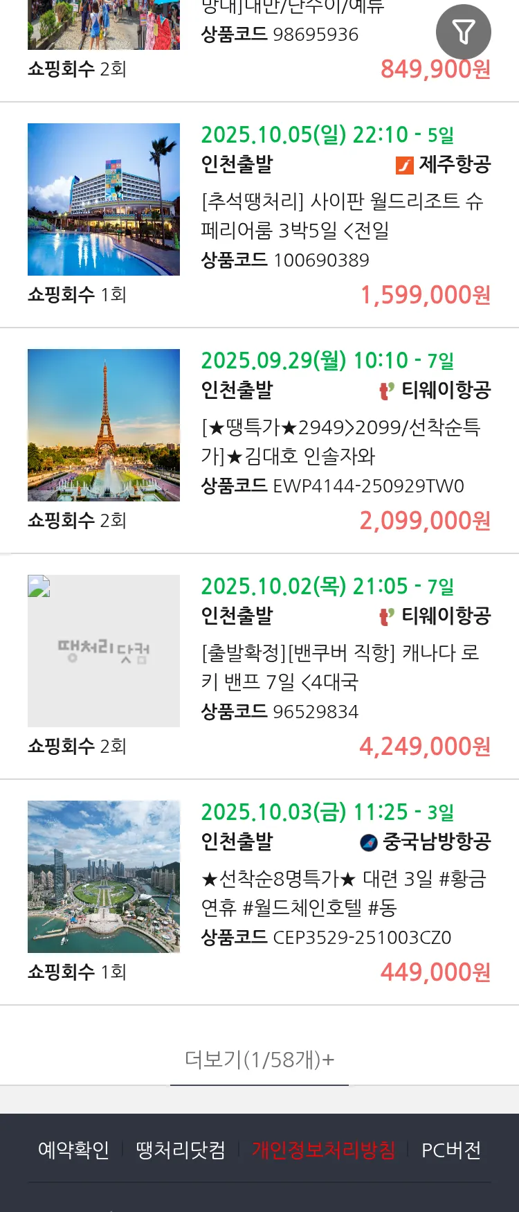 (9월 17일(수)) 땡처리 99.9% 확정 패키지