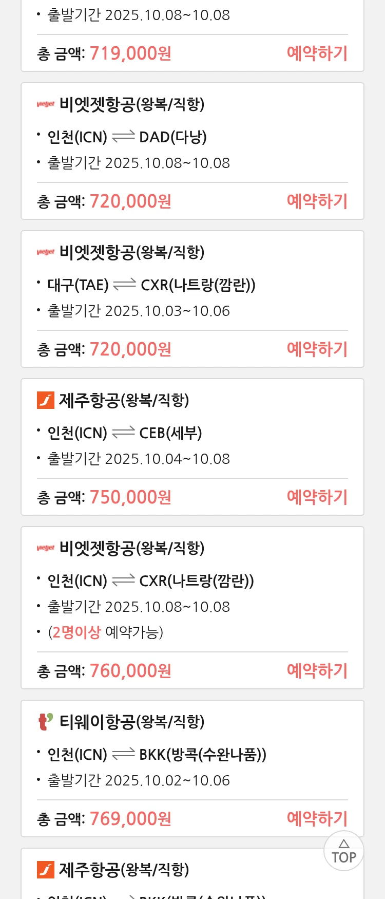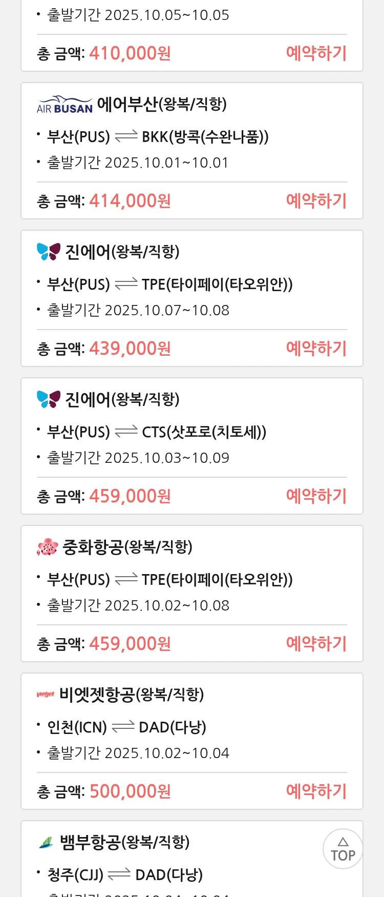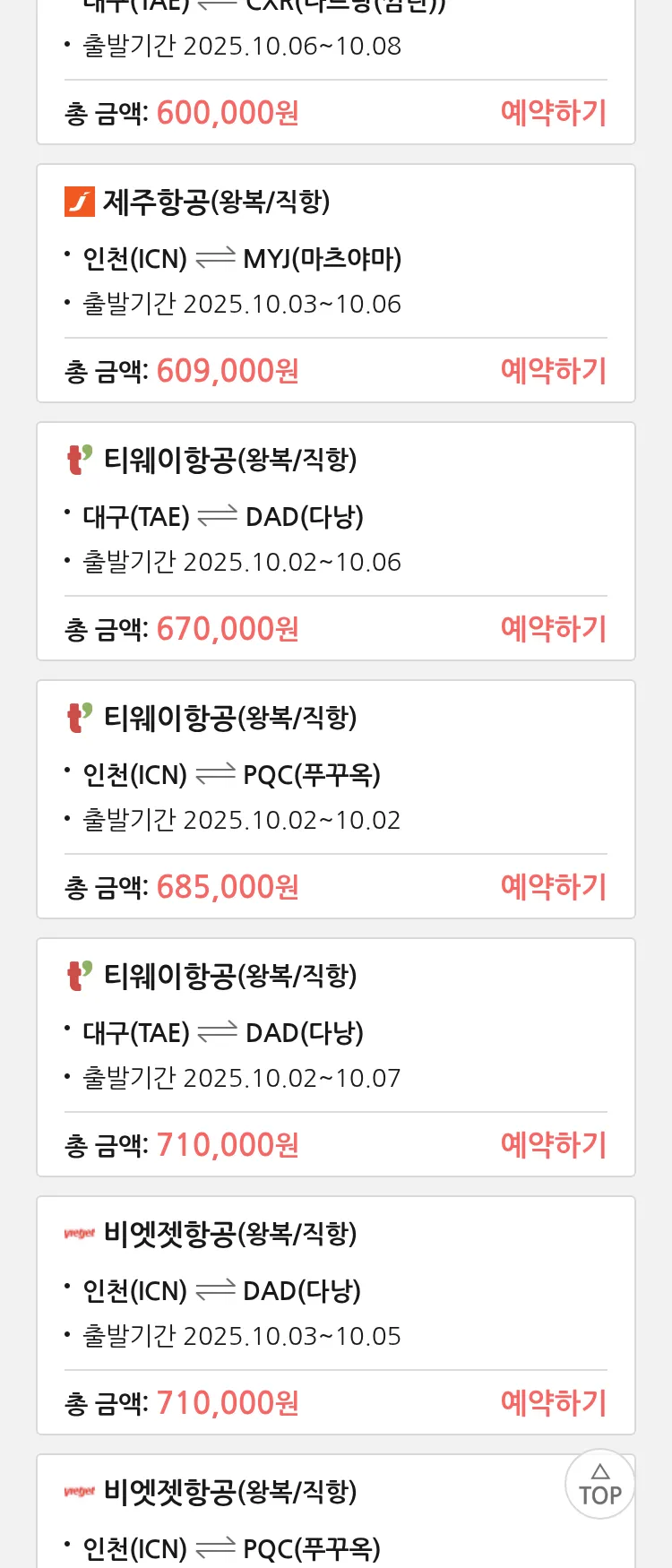 (9월 14일(일)) 땡처리 특가 항공권