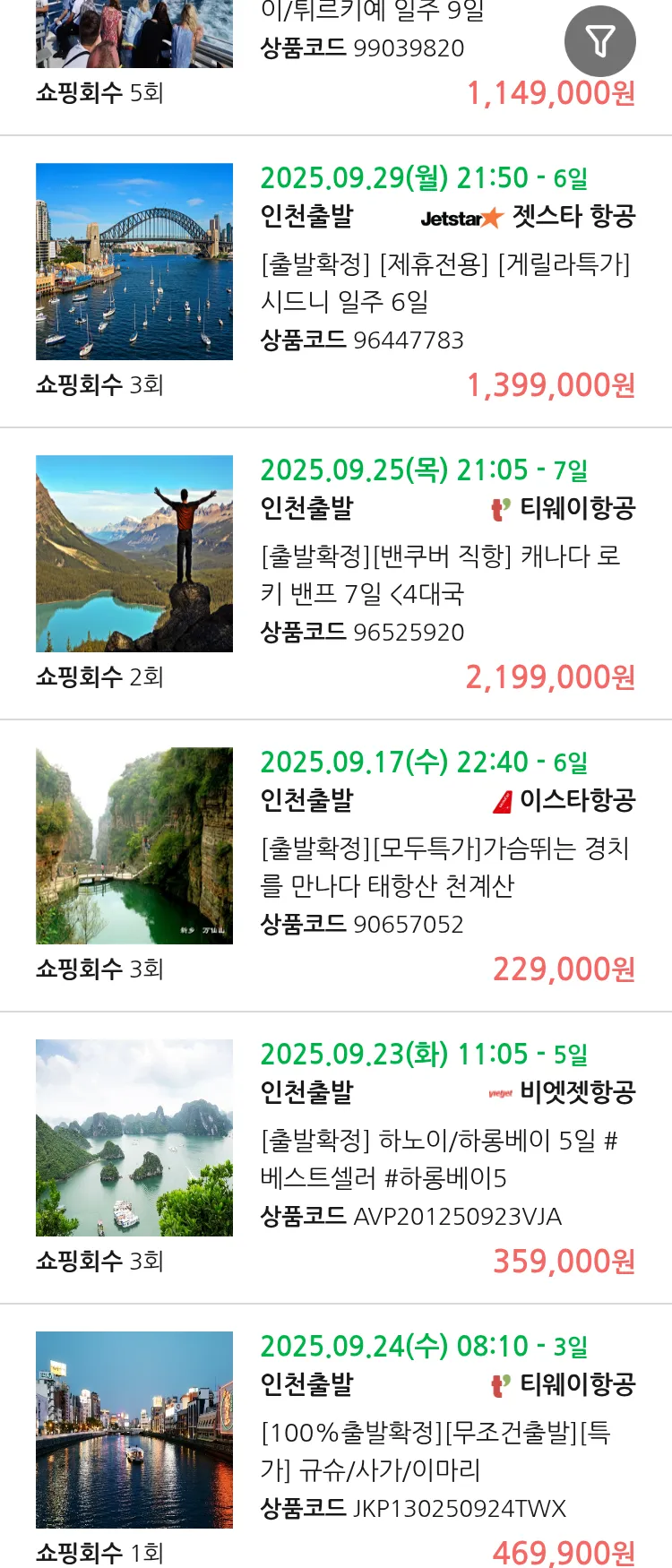(9월 15일(월)) 땡처리 99.9% 확정 패키지